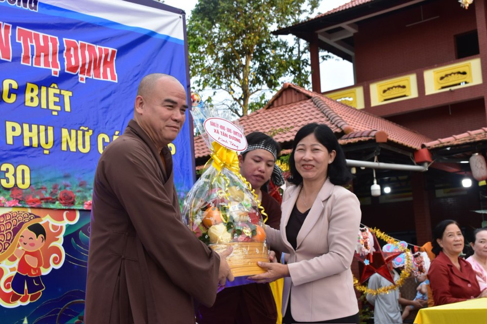 Quang lâm chứng minh và tham dự chương trình có Thượng tọa Thích Tĩnh Triệt – UV HĐTS, Trưởng BTS GHPGVN tỉnh Đồng Tháp; TT.Thích Chơn Trí – Phó ban Thường trực GHPGVN tỉnh Đồng Tháp; SC.Thích Nữ Minh Ngọc – UV BTS GHPGVN tỉnh, Trưởng ban Tổ chức; bà Nguyễn Thị Nhanh - Bí thư Đảng ủy xã Tân Dương; bà Nguyễn Thị Thu Hà - Ủy viên BTV Đảng ủy, Chủ tịch MTTQVN xã Tân dương; quý chư Tôn đức Tăng Ni, quý quan khách đại diện các ban ngành địa phương cùng về tham dự.