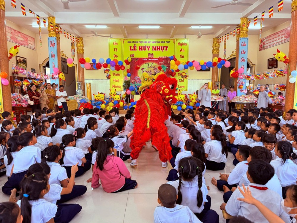 Ni trưởng Trụ trì đã bày tỏ niềm hoan hỉ và rất vui khi nhìn thấy các em được vui chơi đúng với lứa tuổi học trò. Ni trưởng gửi gắm những lời chúc và nhắc nhở các em luôn cố gắng học tập, xứng đáng là con ngoàn trò giỏi và trở thành người tốt trong xã hội.