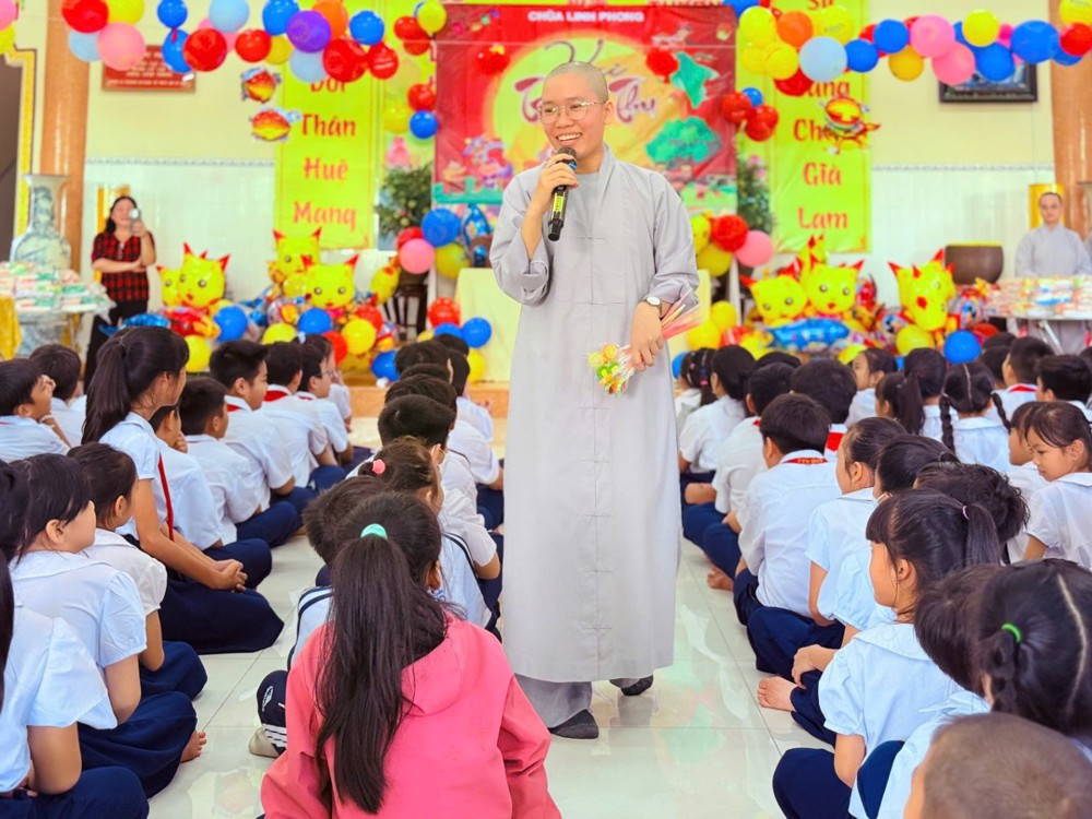Đại diện nhà trường, cô Lê Thị Lam gửi lời tri ân sâu sắc đến Ni trưởng Trụ trì chùa Linh Phong luôn dành sự quan tâm đặc biệt đến các em nhỏ trong mùa Trung thu. Đây là một động lực rất lớn để khích lệ tinh thần học tập của các em.