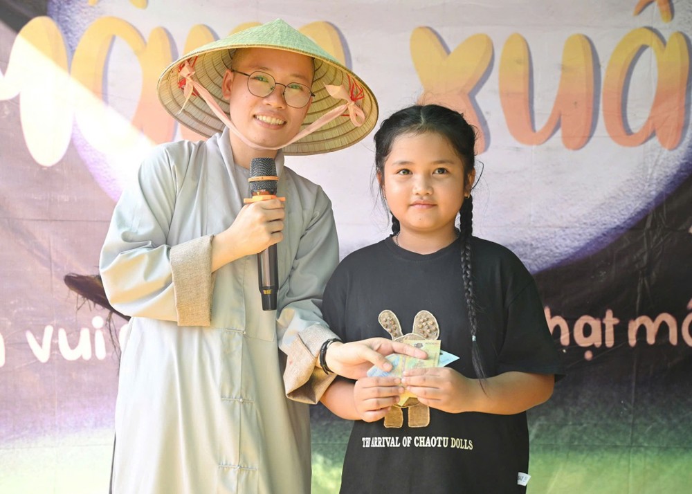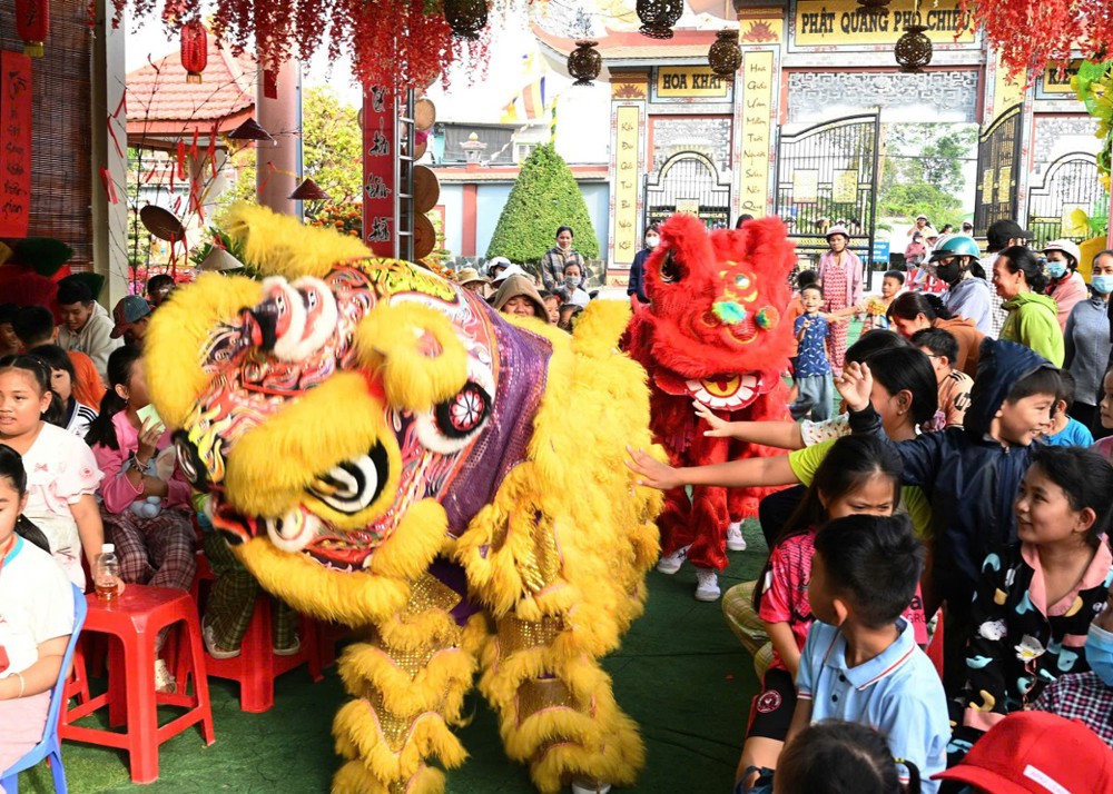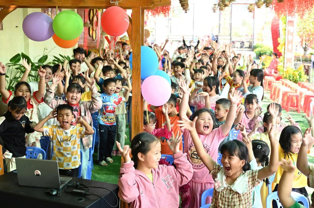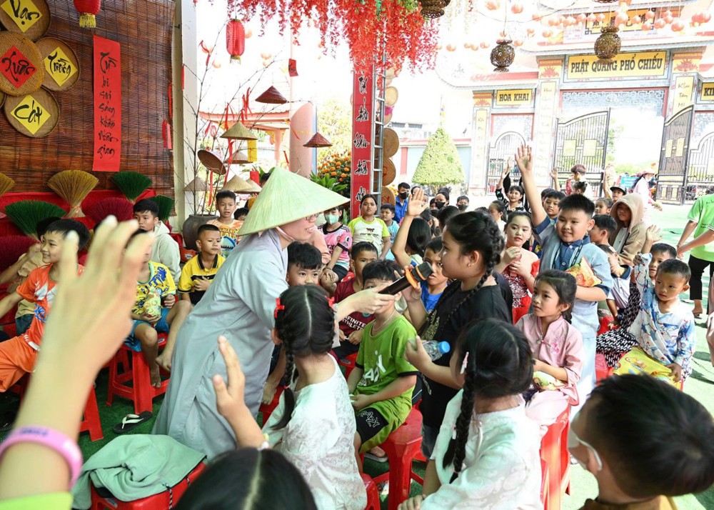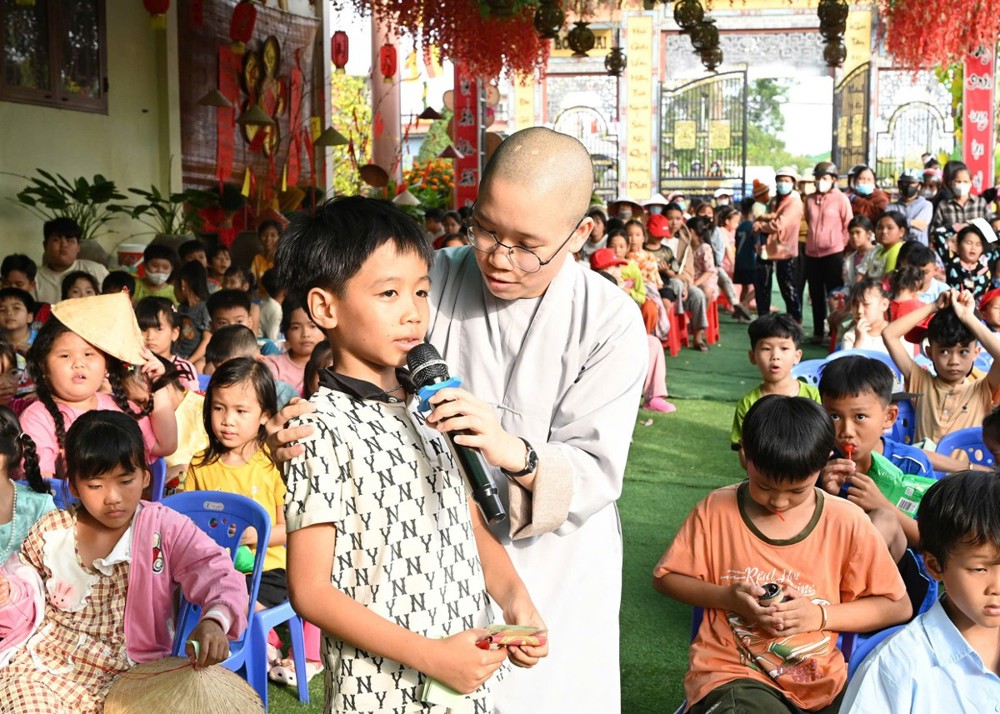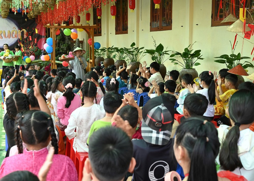 Mở đầu chương trình là màn múa lân sôi động, mang đến không khí Xuân rộn ràng, tiếp nối là các tiết mục văn nghệ đặc sắc và nhiều trò chơi vui nhộn, đố vui có thưởng. Đặc biệt, phần giao lưu cùng Sư cô Vạn Nguyên đã tạo nên nhiều tiếng cười và khoảnh khắc gần gũi, giúp các em vừa học hỏi điều hay, vừa có thêm niềm vui trong ngày hội.