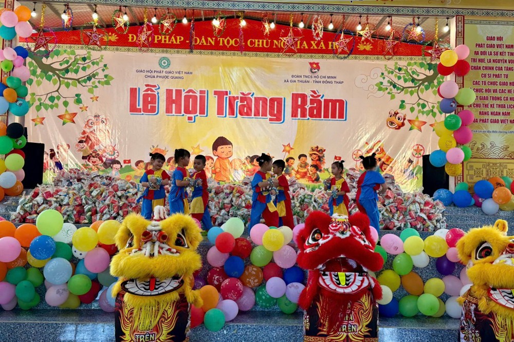 PSO - Hoà chung trong không khí Tết Trung thu, chiều tối ngày 5/10/2025 (tức 14/8/Ất Tỵ), chùa Phước Quang (xã Gia Thuận) phối hợp Đoàn Thanh niên Cộng sản Hồ Chí Minh xã Gia Thuận tổ chức chương trình “Lễ hội Trăng rằm” đã thu hút hơn 500 em thiếu nhi, học sinh tham dự.