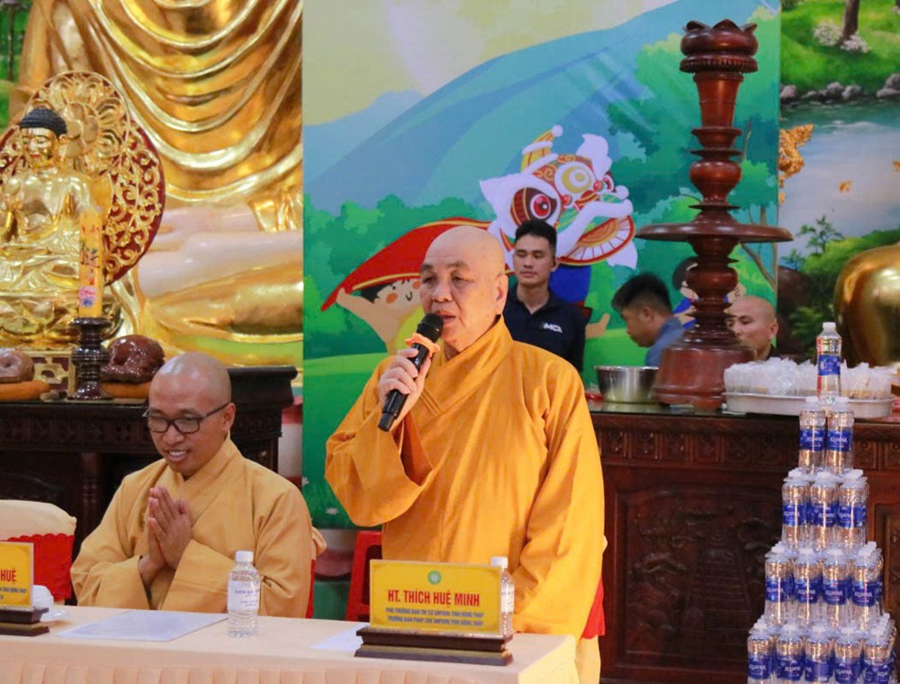 Hòa thượng Thích Huệ Minh – Phó Ban Trị sự kiêm Trưởng Ban Pháp chế GHPGVN tỉnh Đồng Tháp thay mặt cho chư Tôn đức Ban Trị sự đã có đôi lời cảm ơn đến các đơn vị lãnh đạo cấp chính quyền. Đặc biệt chúc các cháu thiếu nhi hưởng một mùa trung thu tại chùa Quê Hương thật nhiều niềm vui, hạnh phúc. Luôn luôn cố gắng chăm ngoan, học giỏi để trở thành người có ích cho xã hội.