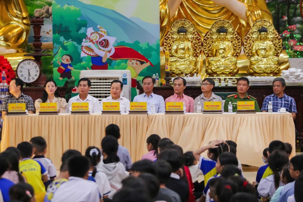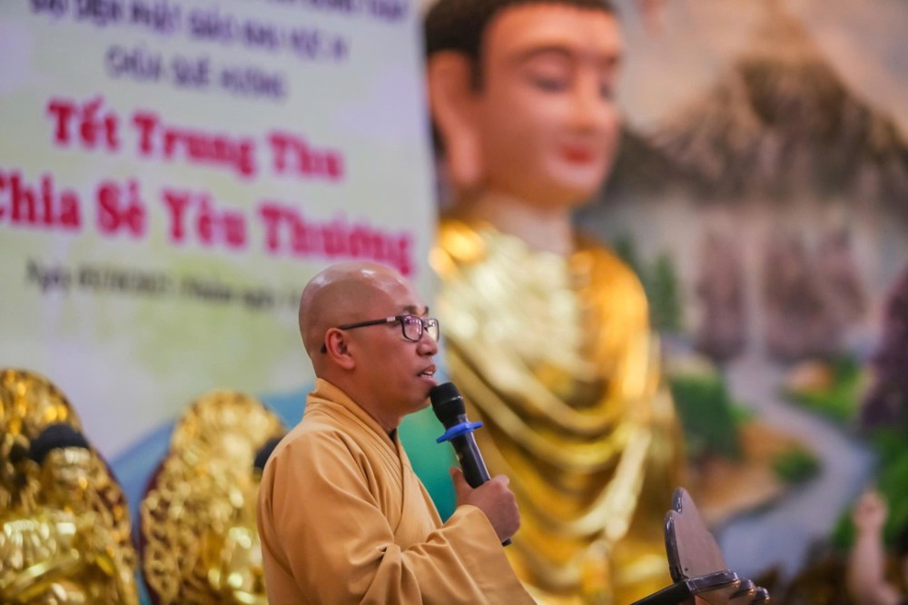 Phát biểu mở đầu chương trình, Thượng tọa Thích Phước Huệ chia sẻ rằng Trung thu là ngày hội truyền thống dành cho thiếu nhi, không phân biệt tôn giáo. Đây là dịp để các em được vui chơi, học hỏi và phát triển nhận thức. Thượng tọa nhấn mạnh: Phật giáo luôn đồng hành cùng dân tộc, luôn quan tâm đến đời sống vật chất và tinh thần của thế hệ măng non – những mầm xanh tương lai của đất nước.