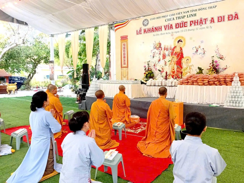 PSO - Nhân Lễ hội Gò Tháp truyền thống, Thượng tọa Thích Phước Huệ – Phó Ban Trị sự GHPGVN tỉnh Đồng Tháp, Trụ trì chùa Tháp Linh (xã Đốc Binh Kiều, tỉnh Đồng Tháp) đã trang nghiêm tổ chức Lễ khánh vía Đức Phật A Di Đà trong ba ngày 13, 14 và 15 tháng 11 (Âm lịch), trong không khí thanh tịnh, trang nghiêm và thắm đượm đạo tình.
