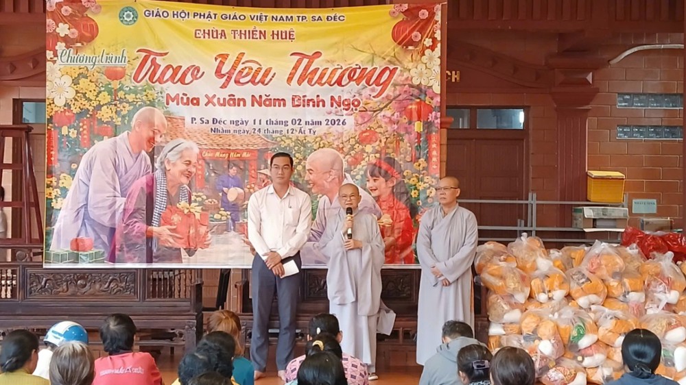 PSO - Bên thềm Xuân Bính Ngọ, chiều ngày 11/02/2026 (nhằm ngày 24 tháng Chạp năm Ất Tỵ), Ni trưởng Thích Nữ Như Trung – Trụ trì chùa Thiền Huệ (phường Sa Đéc) đã tổ chức chương trình “Trao yêu thương mùa Xuân năm Bính Ngọ”, trao tặng 280 phần quà Tết đến các hộ gia đình có hoàn cảnh khó khăn trên địa bàn, góp phần giúp bà con vui Xuân đón Tết ấm áp, nghĩa tình.