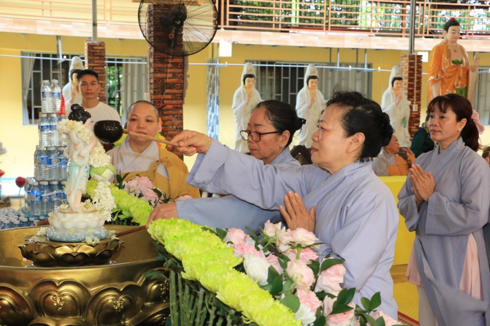 Trong giọng xướng trầm bổng, đại chúng cùng tụng bài kệ Mộc Dục với từng gáo nước tinh khiết, được dâng lên tưới tẩm cúng dường tôn tượng Pháp tướng Sơ sinh của Đức Từ phụ Thích Ca Mâu Ni. Đặc biệt, lễ tắm Phật cũng chính là dịp để các Phật tử, cộng đồng Phật giáo khắp nơi trên thế giới thể hiện lòng tôn kính, hân hoan đối với sự xuất hiện của đấng Giác Ngộ - Đức Phật Thích Ca cách đây hơn 2.600 năm về trước.