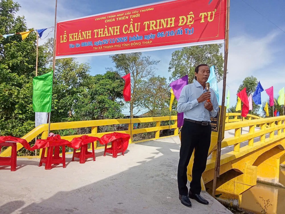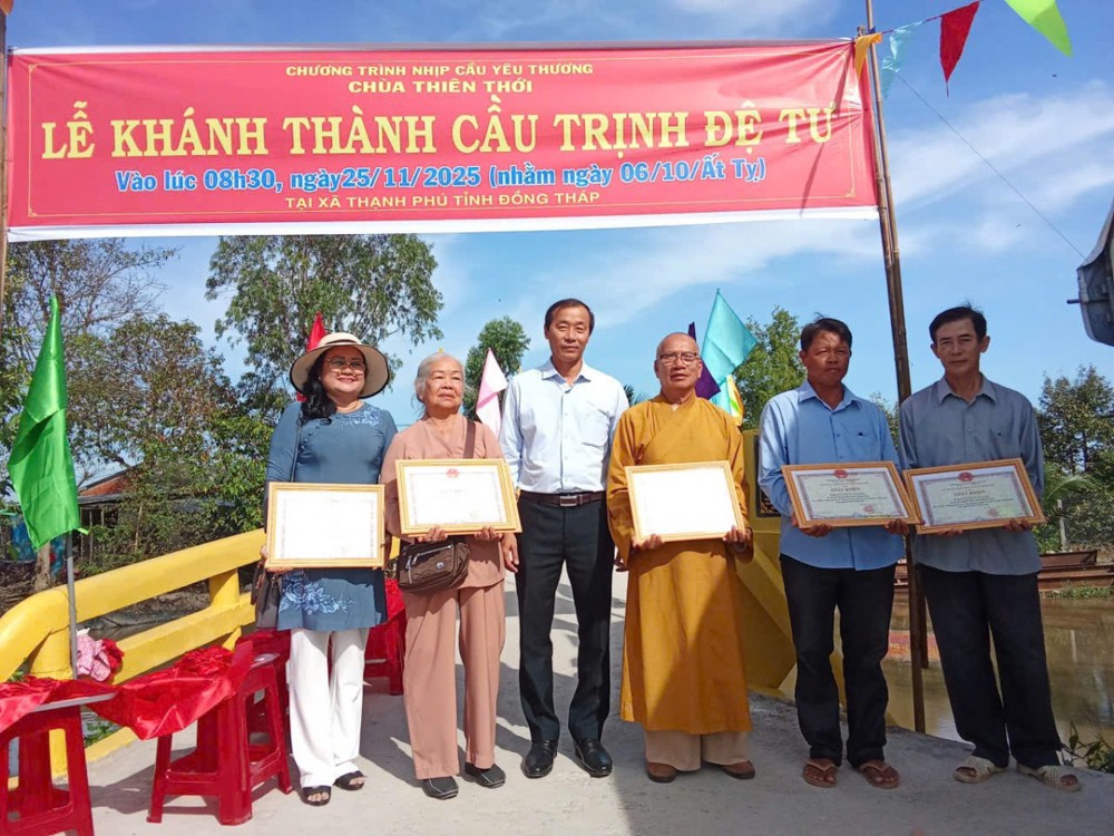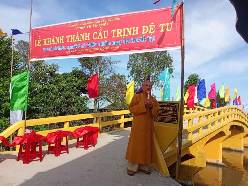 PSO – Ngày 25/11/2025 (nhằm ngày 6/10 năm Ất Tỵ) Hòa thượng Thích Minh Hạnh – Trụ trì chùa Thiên Thới (xã Thới An Hội, TP.Cần Thơ) kết hợp cùng chính quyền địa phương, nhà tài trợ tổ chức cắt băng khánh thành cầu bê tông nông thôn; đồng thời tặng quà cho bà con khó khăn với tổng trị giá 430 triệu đồng.