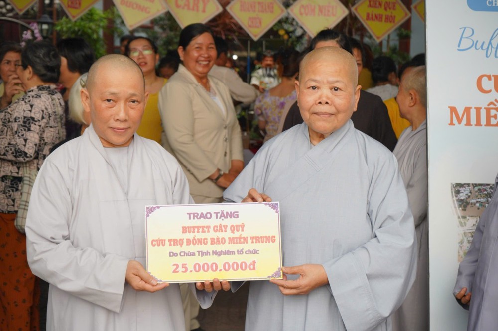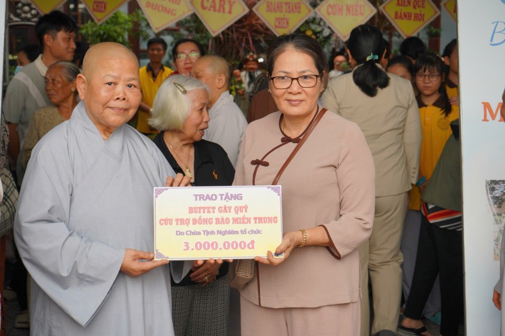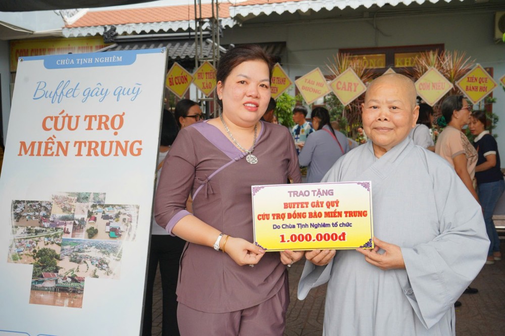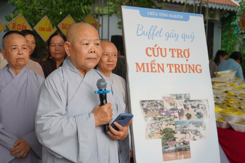 Ni trưởng Thích Nữ Tịnh Nghiêm – Trụ trì chùa Tịnh Nghiêm chia sẻ: Chương trình được tổ chức trong tinh thần từ bi cứu khổ của đạo Phật, nhằm chung tay chia sẻ những khó khăn, mất mát mà đồng bào các tỉnh miền Trung đang gánh chịu do thiên tai, bão lũ trong thời gian qua.