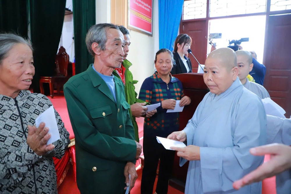 Vừa qua theo các Báo chí đưa tin tại nước Việt Nam đã chịu ảnh hưởng nhiều cơn giông bão tàn khốc đã đi qua các tỉnh miền Bắc, miền Trung, làm thiệt hại rất nhiều của cải vật chất và tính mạng con người. Trong tinh thần “Từ bi – Cứu khổ – Ban vui” của đạo Phật, nhằm chia sẻ những khó khăn cùng đồng bào sau các cơn bão gây ra; Đoàn PBNG Trung ương GHPGVN, trong đó có Ni trưởng Thích Nữ Tịnh Nghiêm đã có chuyến đi nhằm trao những phần quà yêu thương, gửi những năng lượng bình an đến bà con vùng bão lũ.