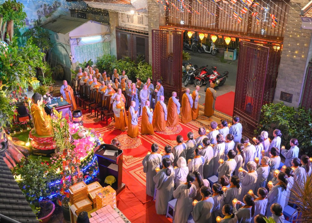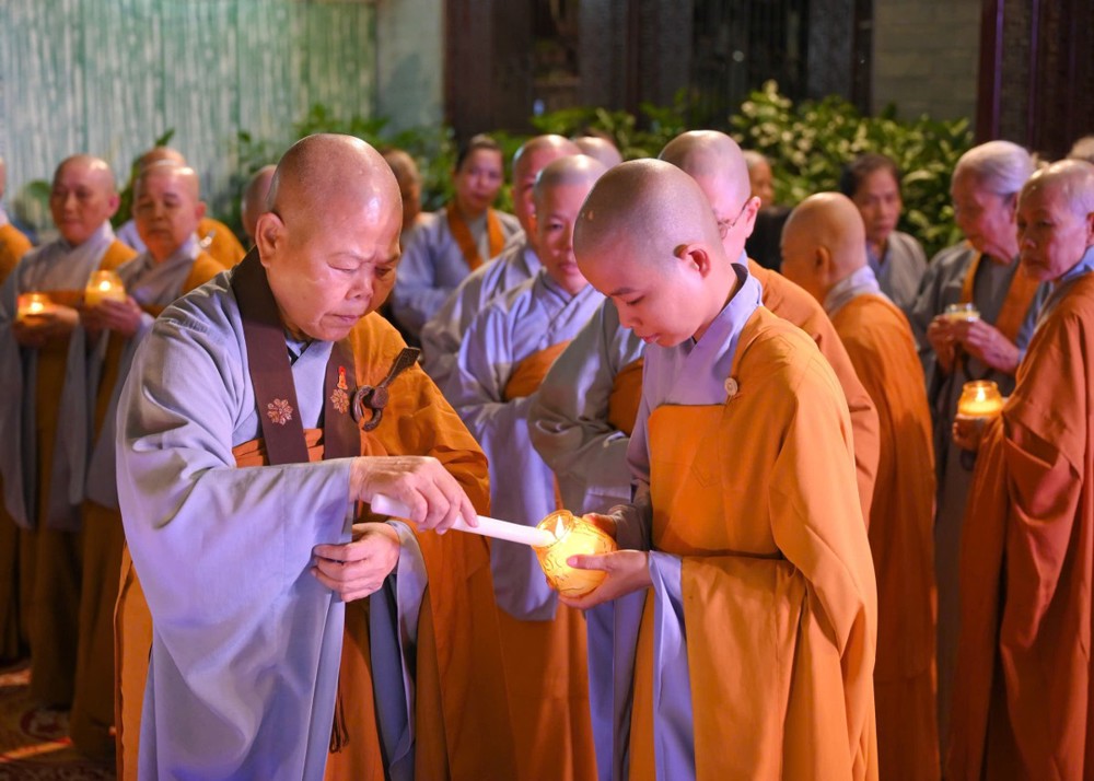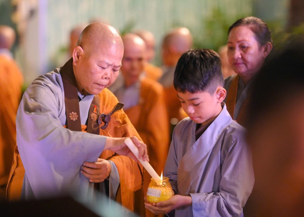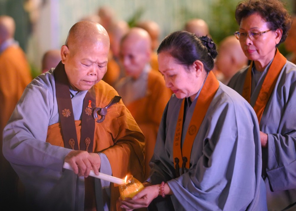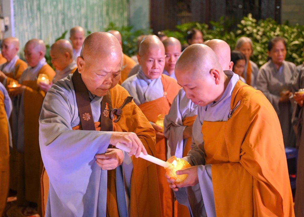 Điểm nhấn thiêng liêng của chương trình là lễ truyền đăng và kinh hành. Ánh sáng từ ngọn nến trí tuệ được truyền trao từ bảo đài Đức Thế Tôn đến từng hành giả, biểu trưng cho sự tiếp nối mạng mạch chánh pháp và lời phát nguyện giữ gìn ánh sáng giác ngộ giữa đời sống thường nhật.