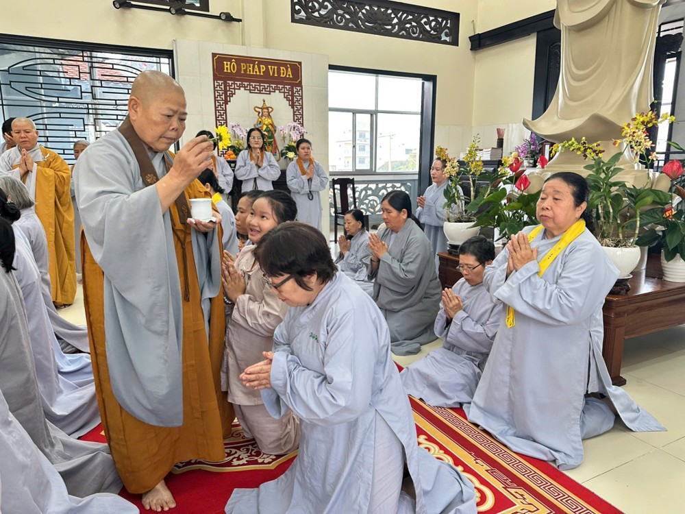 Đặc biệt, vào lúc 4 giờ sáng ngày mùng 8 tháng 12 âm lịch, khoảnh khắc Sao Mai vừa mọc, các hành giả Pháp Hoa đã trang nghiêm cử hành nghi thức thọ Pháp y – một nghi thức mang ý nghĩa trọng đại trong lộ trình tu học của Đạo tràng Pháp Hoa.
