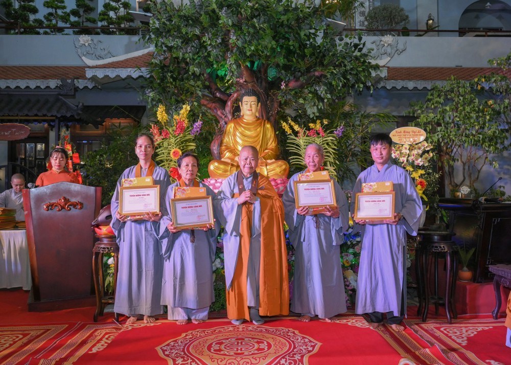 Chương trình tiếp nối với các hoạt động tổng kết như: trao giấy chứng nhận khoá tu, trao giải hội thi giáo lý, hội thi nghi lễ, tuyên dương công đức các Phật tử đã có nhiều đóng góp trong năm qua. Xen kẽ trong chương trình “Đêm Về Nguồn”, Ban Tổ chức cũng đã tìm ra những “Hành giả may mắn” thông qua hình thức bốc thăm trúng thưởng và trao tặng những phần quà ý nghĩa.