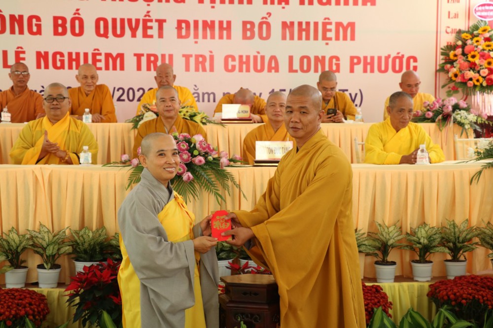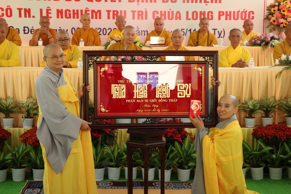 Sau phát biểu khai mạc của Thượng tọa Thích Minh Sơn, Phó Thư ký, Chánh Văn phòng Ban Trị sự GHPGVN tỉnh, Trưởng Đại diện Phật giáo Khu vực II; Đại đức Thích Huệ Phát, Phó ban kiêm Chánh Thư ký Ban Trị sự GHPGVN tỉnh đã tuyên đọc Quyết định số 016/QĐ-BTS-VP2 ngày 30/08/2025 về việc bổ nhiệm Trụ trì chùa Long Phước. Theo đó, Sư cô Thích Nữ Lệ Nghiêm chính thức được bổ nhiệm đảm nhiệm chức vụ Trụ trì chùa Long Phước, phường Sa Đéc, tỉnh Đồng Tháp.