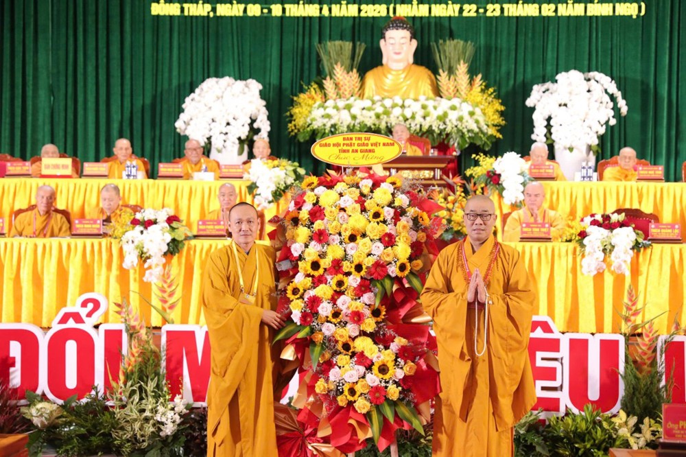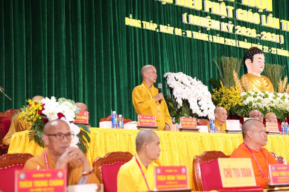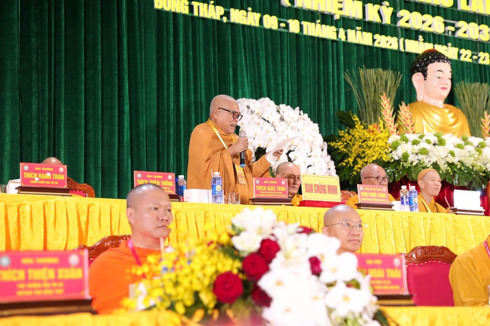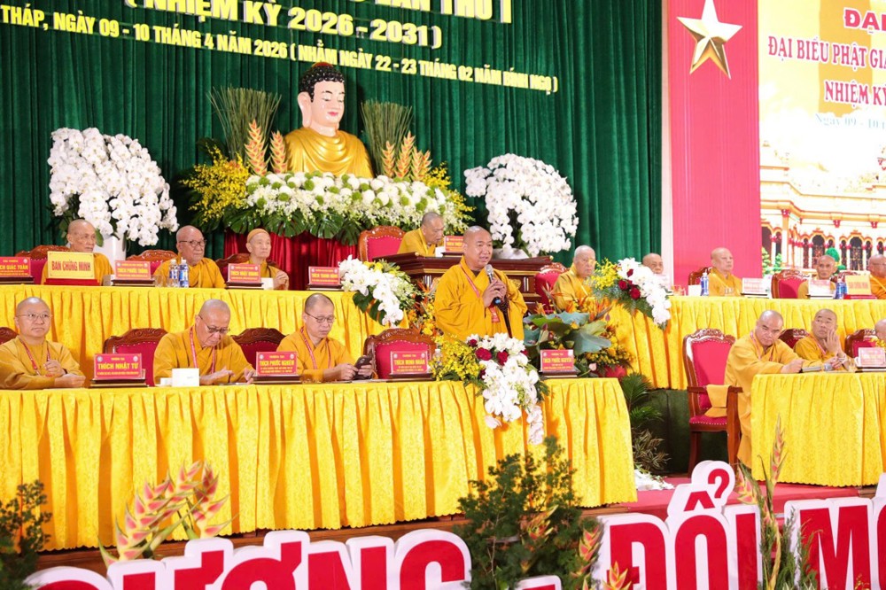 "Giáo hội trân trọng ghi nhận công đức của Ban Trị sự với tinh thần đoàn kết, hòa hợp. Đại hội đã suy cử tân Ban Trị sự, nhiệm kỳ 2026-2031 với chủ đề 'Kỷ cương - Đổi mới - Hiệu lực - Hiệu quả', thích hợp hoàn cảnh hiện nay. Tôi tin tưởng Ban Trị sự Phật giáo tỉnh Đồng Tháp nhiệm kỳ mới sẽ đạt được kết quả hoạt động Phật sự nhiệm kỳ sau cao hơn nhiệm kỳ trước", Hòa thượng Thích Giác Toàn phát biểu chỉ đạo tại Đại hội.