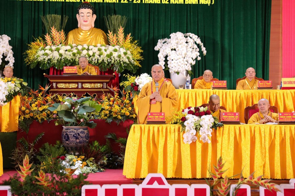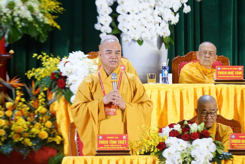 “Đại hội hôm nay chính là cơ hội để nhìn lại, nhận xét, đánh giá những ưu khuyết điểm trong quá trình vận hành Phật sự suốt nhiệm kỳ qua của GHPGVN tỉnh Đồng Tháp, nhằm đúc kết những kinh nghiệm, khắc phục những hạn chế, phát huy những ưu điểm, mở ra một bước tiến mới trên tinh thần “Kỷ cương - Đổi mới - Hiệu lực - Hiệu quả”; kỷ cương trong lãnh đạo, trách nhiệm trong chỉ đạo, đổi mới trong tư duy, hiệu lực trong quản lý và hiệu quả trong Phật sự… nhằm hướng đến mục tiêu xây dựng ngôi nhà Giáo hội phát triển vững mạnh, thông minh trong thời đại kỷ nguyên số toàn cầu...”, Thượng tọa Thích Tĩnh Triệt khẳng định.