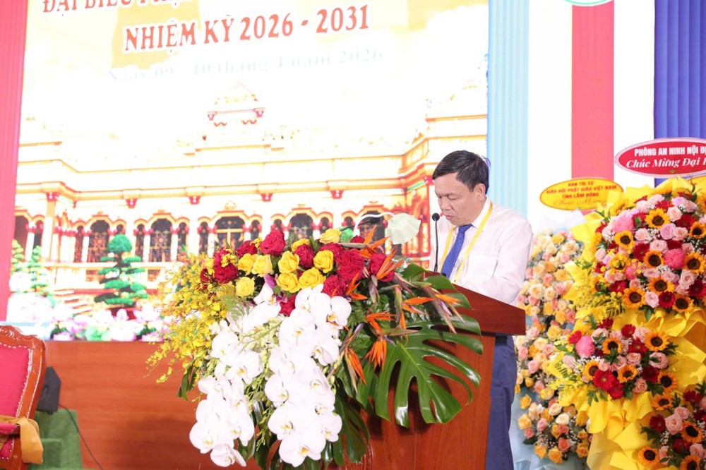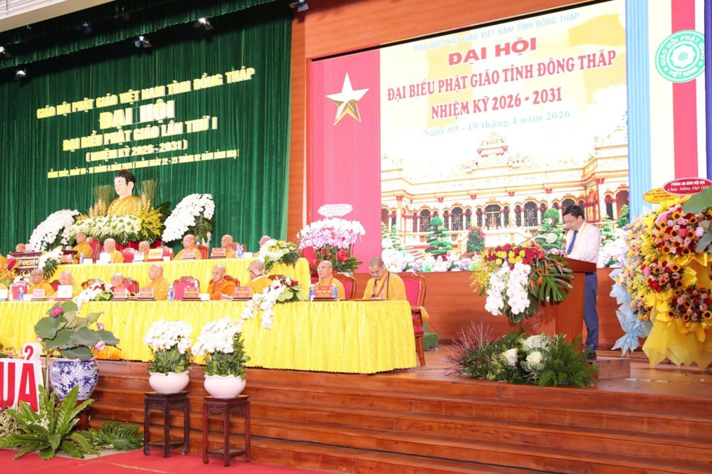 Thay mặt lãnh đạo tỉnh Đồng Tháp, ông Phan Văn Thắng - Phó Bí thư Thường trực Tỉnh ủy, Chủ tịch Ủy ban MTTQVN tỉnh Đồng Tháp phát biểu chúc mừng Tân ban Trị sự Phật giáo tỉnh nhiệm kỳ 2026-2031. Đại hội hôm nay diễn ra trong thời điểm hết sức quan trọng khi đất nước vừa diễn ra thành công cuộc bầu cử Quốc hội và Hội đồng nhân dân các cấp.