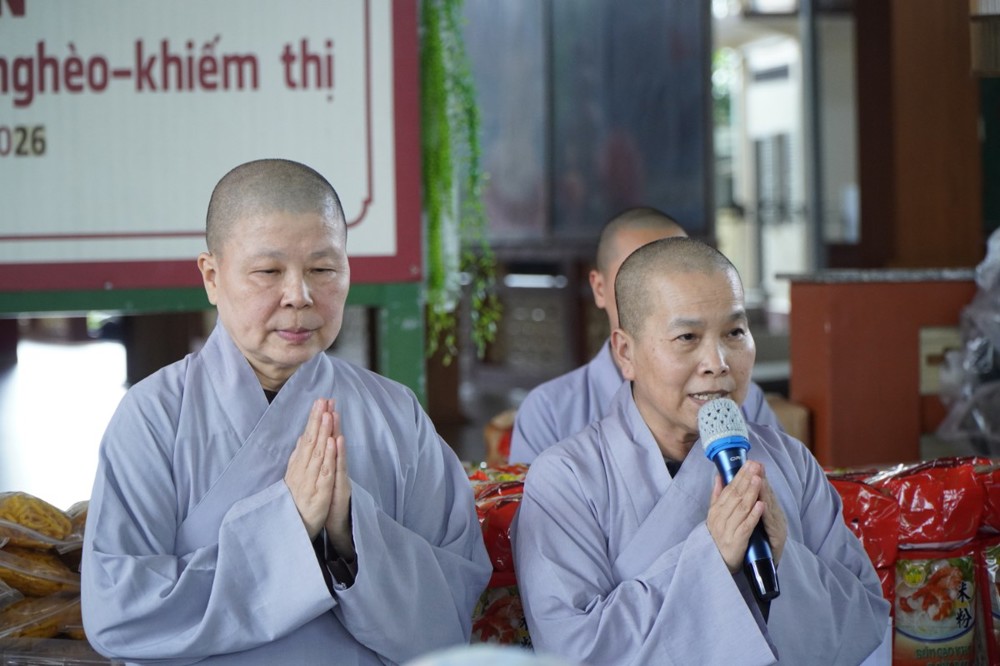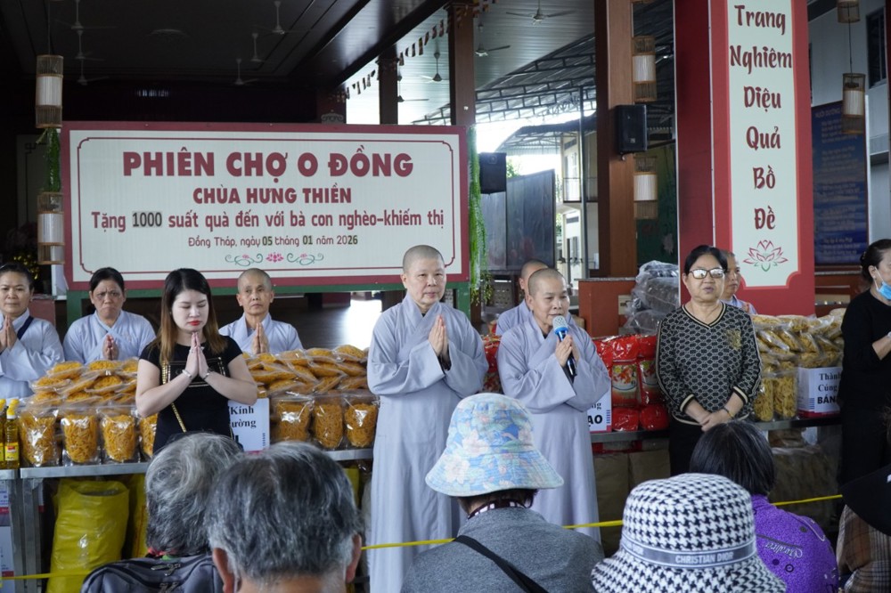 Phát biểu khai mạc chương trình, Ni sư Thích Nữ Như Lan – Trụ trì chùa Hưng Thiền đã gửi lời tri ân sâu sắc đến quý mạnh thường quân, đặc biệt là sự chung tay hỗ trợ của gia đình Sư cô Tâm Minh, gia đình Phật tử Diệp Việt Huỳnh, gia đình Trí Lạc – Diệu Kim… đã phát tâm đóng góp, giúp Phiên chợ 0 đồng được thành tựu viên mãn theo đúng tinh thần từ bi của đạo Phật.