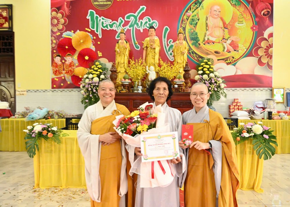 Ni sư Trụ trì chùa Phú Khánh rất hoan hỷ tán dương và ghi nhận công đức của quý Phật tử gần xa đã luôn phát tâm hộ trì Tam Bảo, đồng lòng chung sức trong các Phật sự, cũng như tích cực tham gia tu học suốt một năm qua.