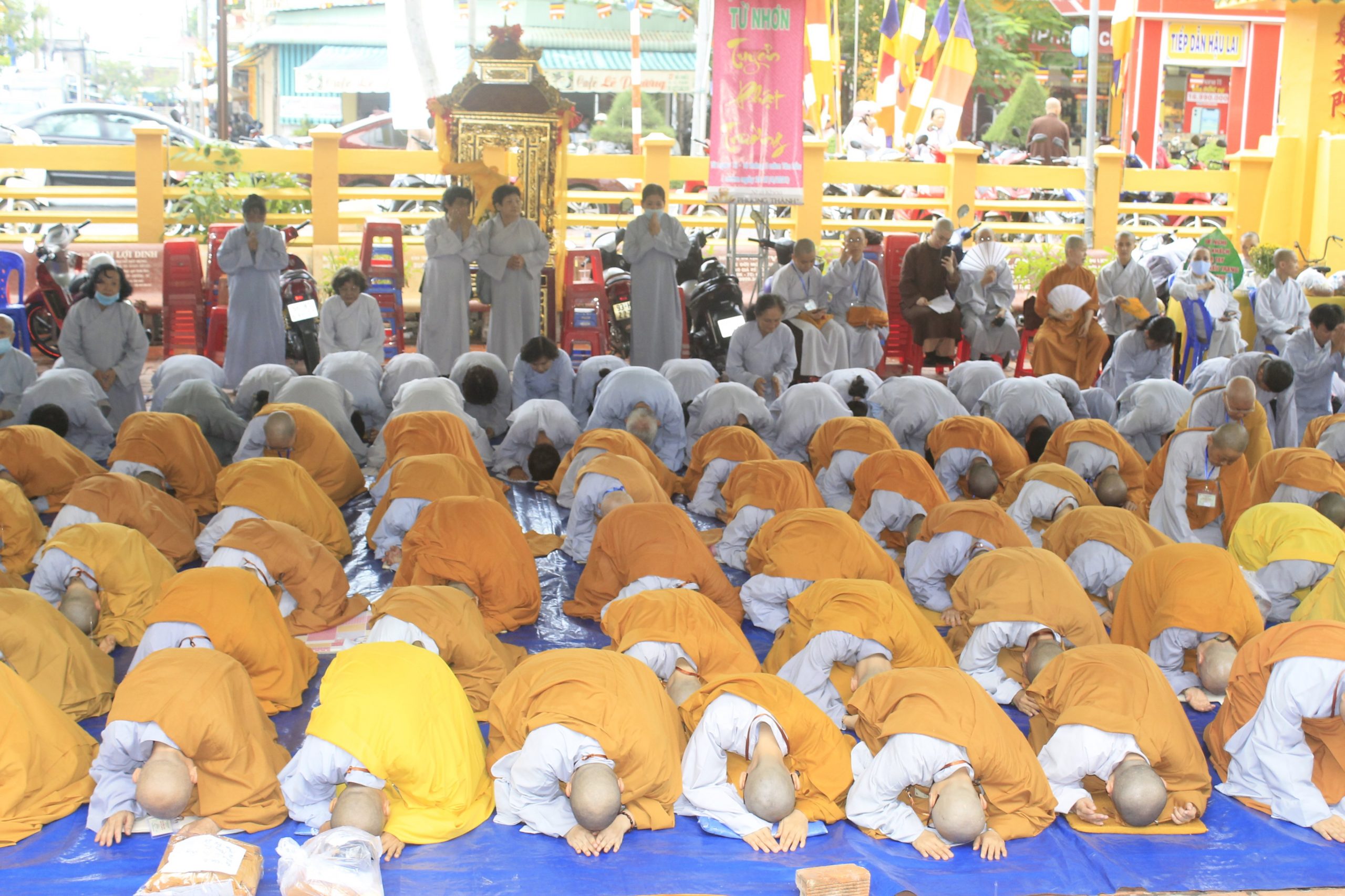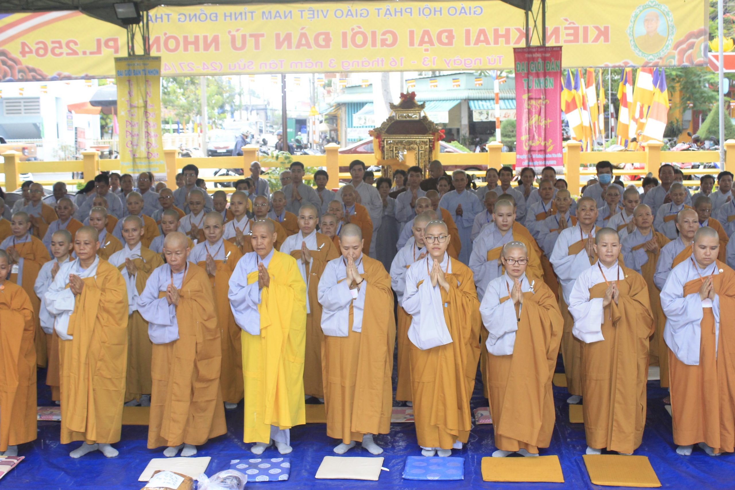 PSO - Chiều ngày 27/04/2021, trong khuôn khổ Đại giới đàn Từ Nhơn PL.2564 tại Đại giới trường chùa Phước Hưng (phường 01, TP. Sa Đéc, tỉnh Đồng Tháp), Ban Kiến đàn cung thỉnh Hội đồng Giới sư đăng đàn truyền Bồ-tát giới cho các giới tử cùng quý thiện nam tín nữ Phật tử phát tâm thọ giới và sau đó các Giới tử đã phát tâm tấn hương trong âm thanh của tiếng niệm Phật và tiếng chuông trống Bát Nhã ngân vang.