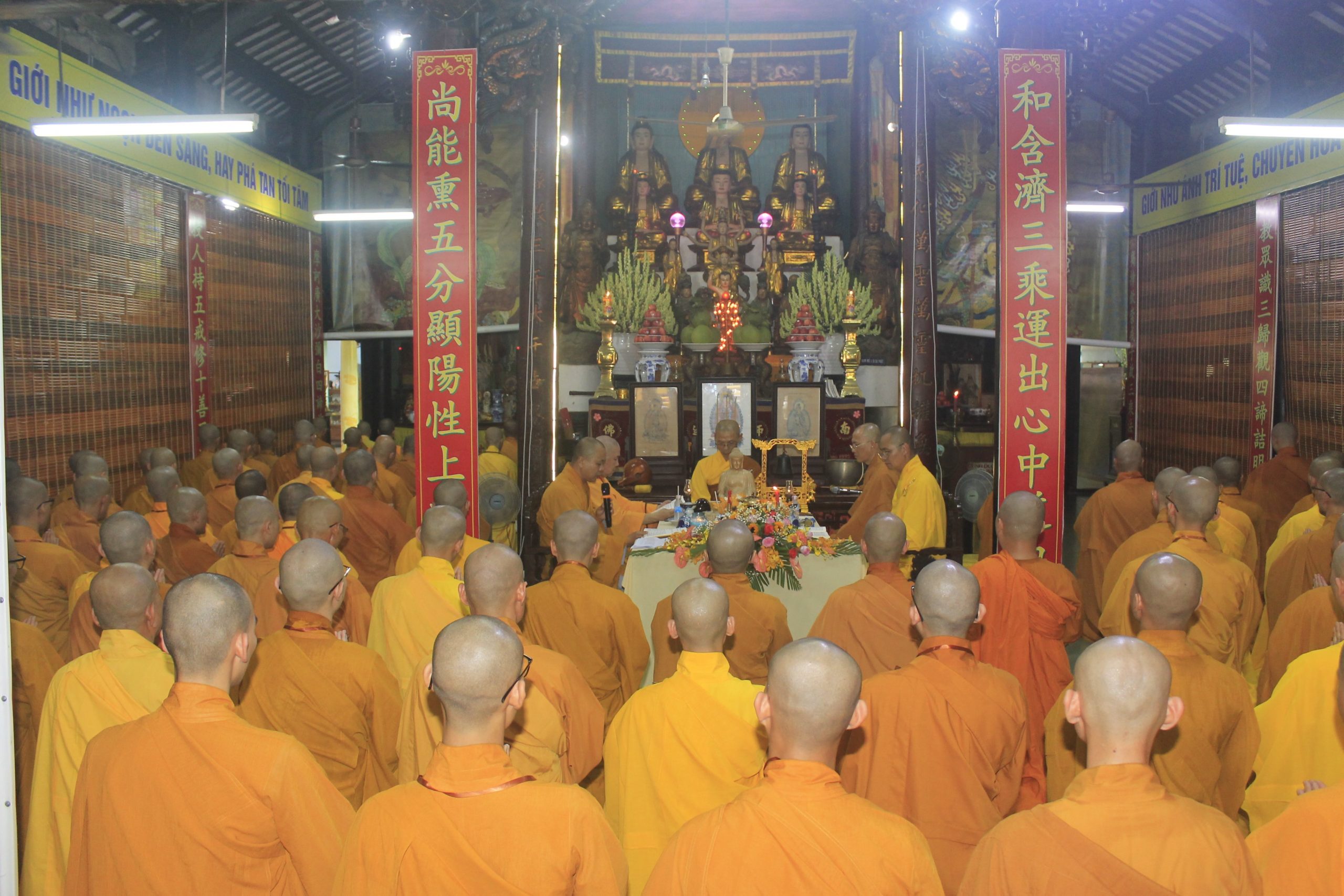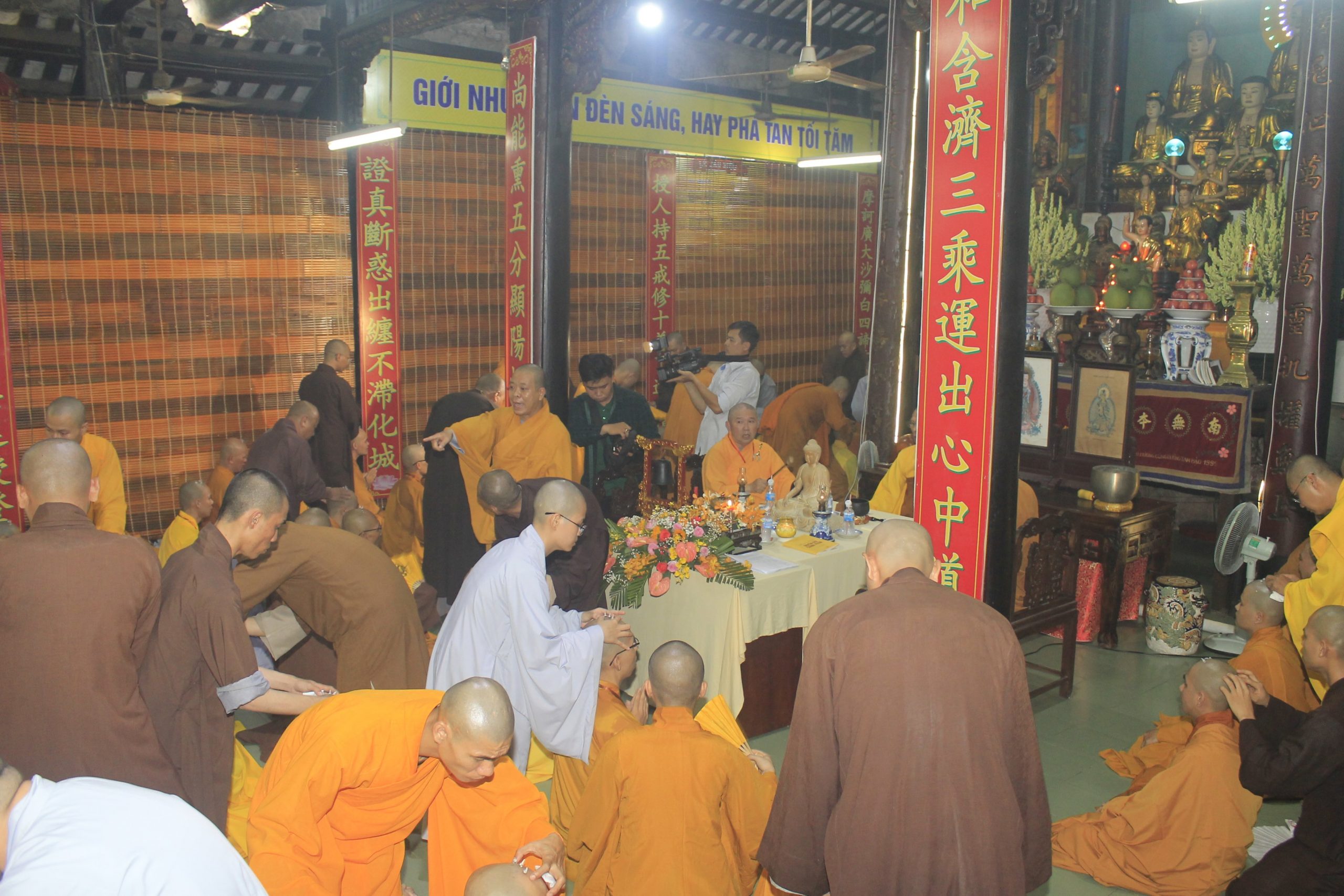 Hòa thượng Thích Thiện An đương vi Đường đầu Hòa thượng đàn Tỳ kheo, Sa-di, thay mặt chư Tôn đức Hội đồng Giới sư ban lời giáo huấn về hạnh nguyện lợi tha của người phát nguyện thọ Bồ-tát giới. Đồng thời, Hòa thượng hướng dẫn các Giới tử cung thỉnh Đức Bổn Sư Thích Ca Mâu Ni đương vi Đường đầu Hòa thượng; cung thỉnh Bồ-tát Đại Trí Văn Thù đương vi Yết-ma A-xà-lê; cung thỉnh Bồ-tát Di Lặc đương vi Giáo thọ A-xà-lê; cung thỉnh mười phương Như Lai làm tôn chứng sư và mười phương Bồ-tát làm pháp lữ cùng học giới.