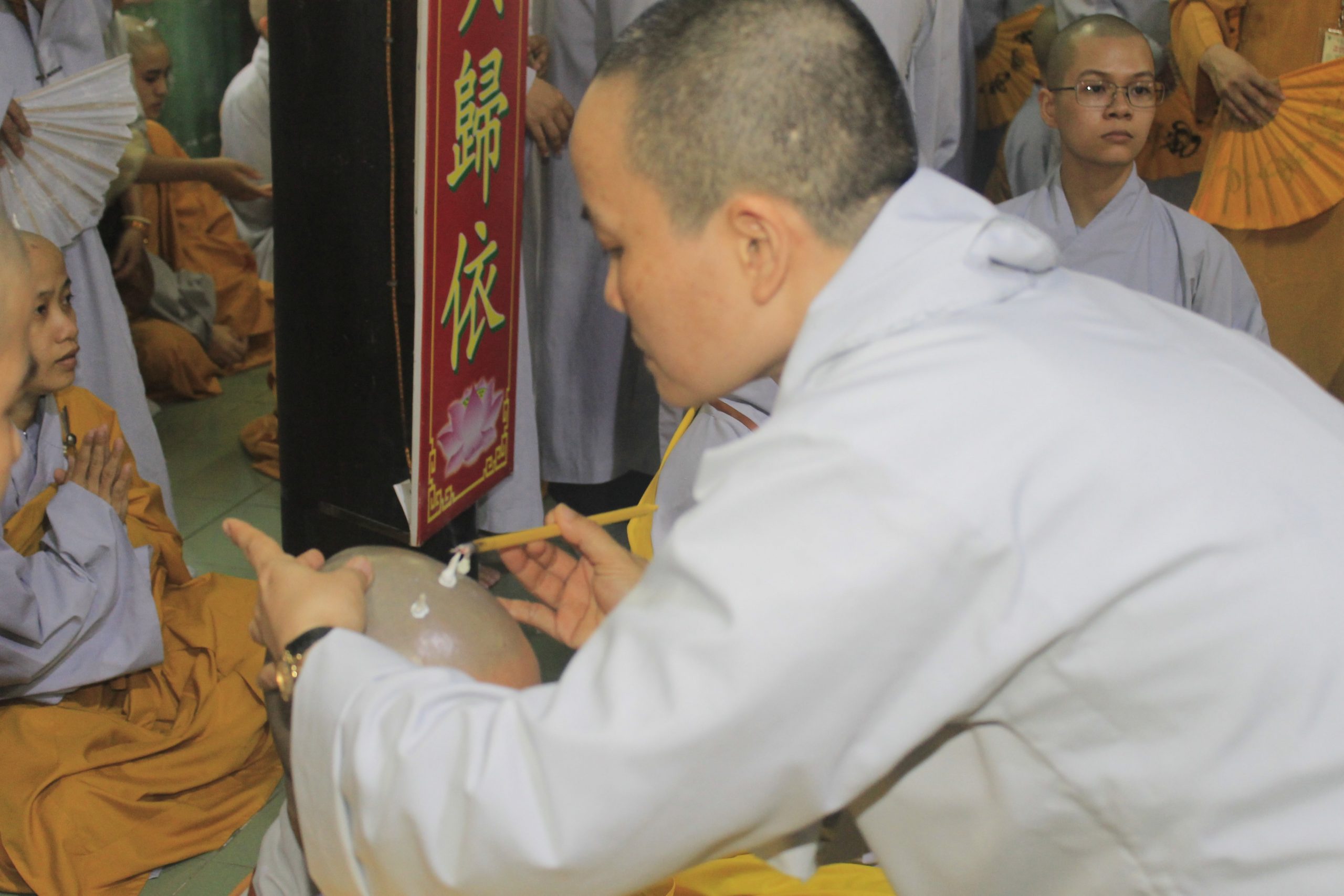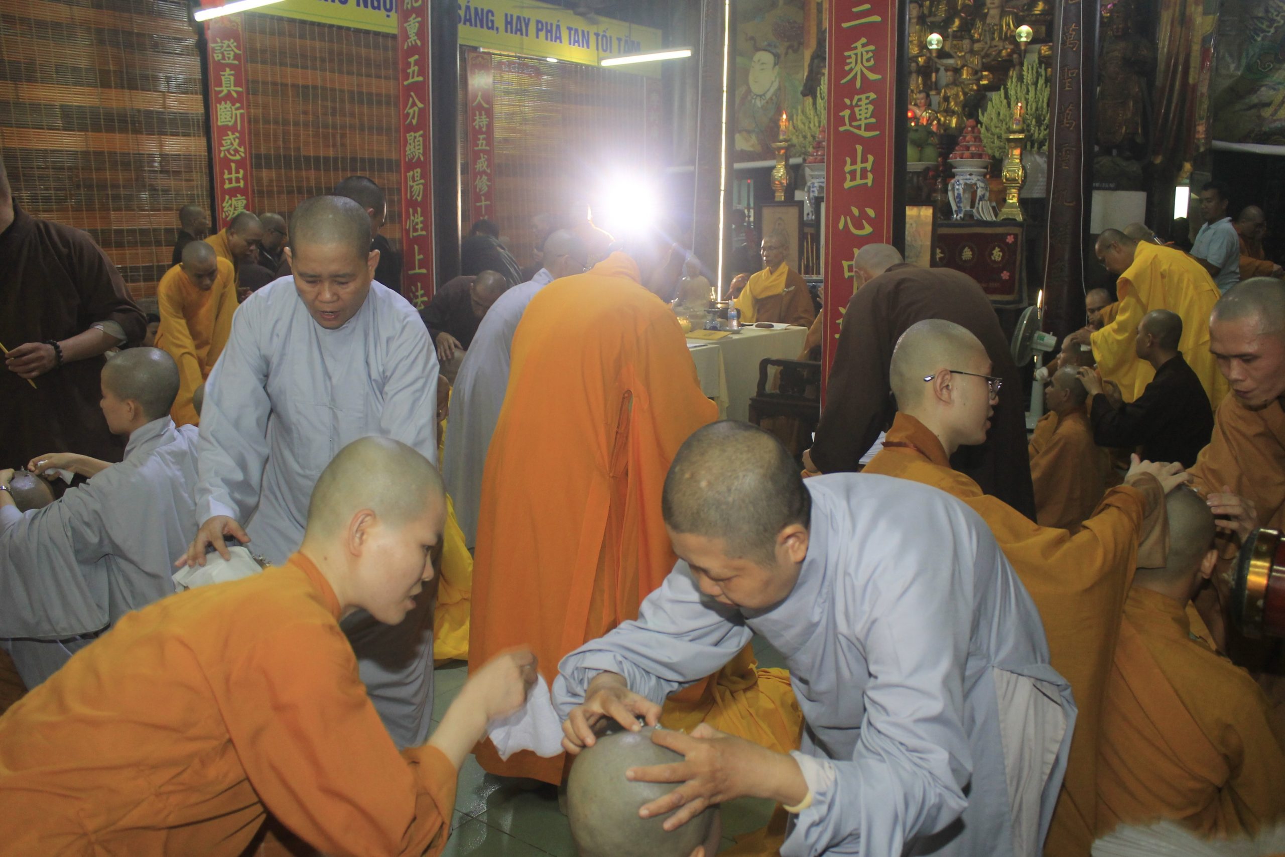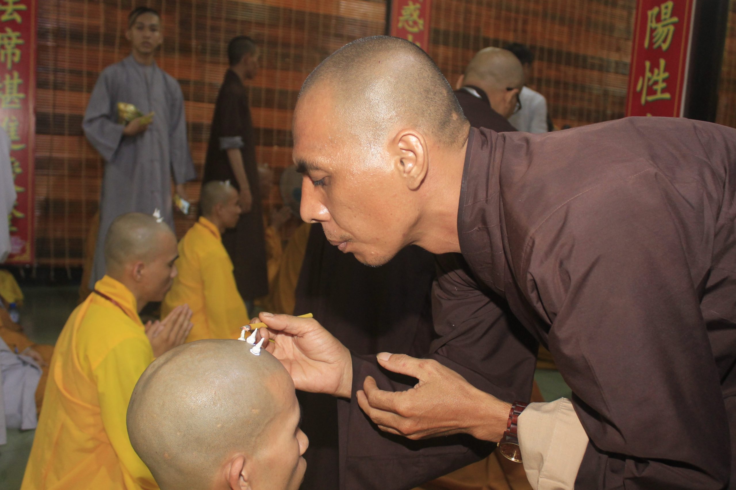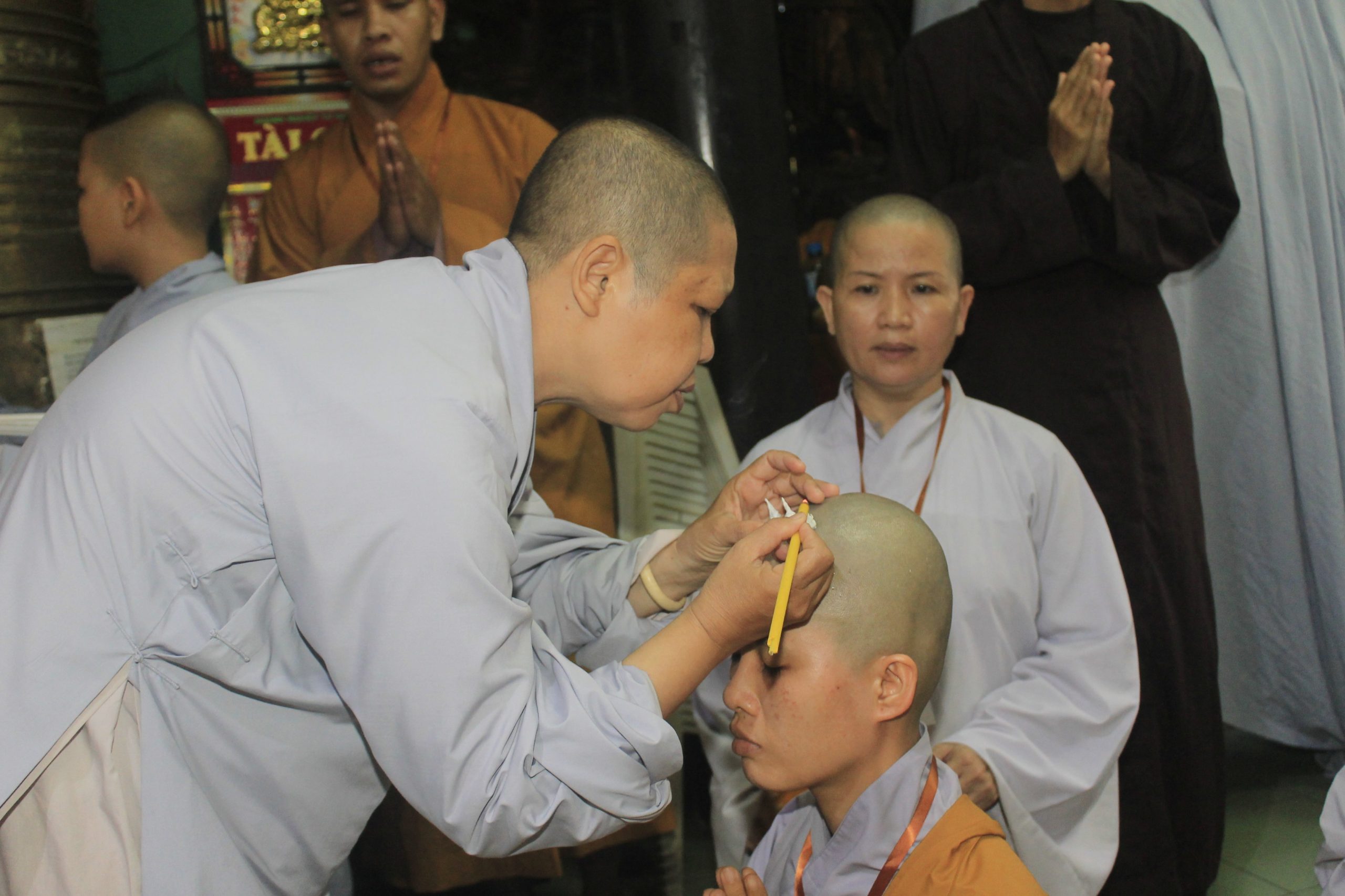 Tấn hương là một nghi thức biểu thị ý chí khao khát học hạnh Bồ-tát nguyện hiến trọn cuộc đời mình phục vụ đạo pháp và nhân sinh. Người phát tâm tấn hương có thể đốt 01 liều, 03 liều, 06 liều hay 09 liều trên đỉnh đầu tùy theo tâm nguyện của người phát tâm. Các liều đốt hương này hoàn toàn không nói lên phẩm chất của vị Tỳ kheo này tu cao hơn vị Tỳ kheo kia mà chỉ biểu thị chí nguyện cúng dường và chí nguyện dấn thân của vị ấy. Truyền thống phát nguyện tấn hương sau khi các giới tử thọ giới Tỳ kheo và Bồ tát giới viên mãn.