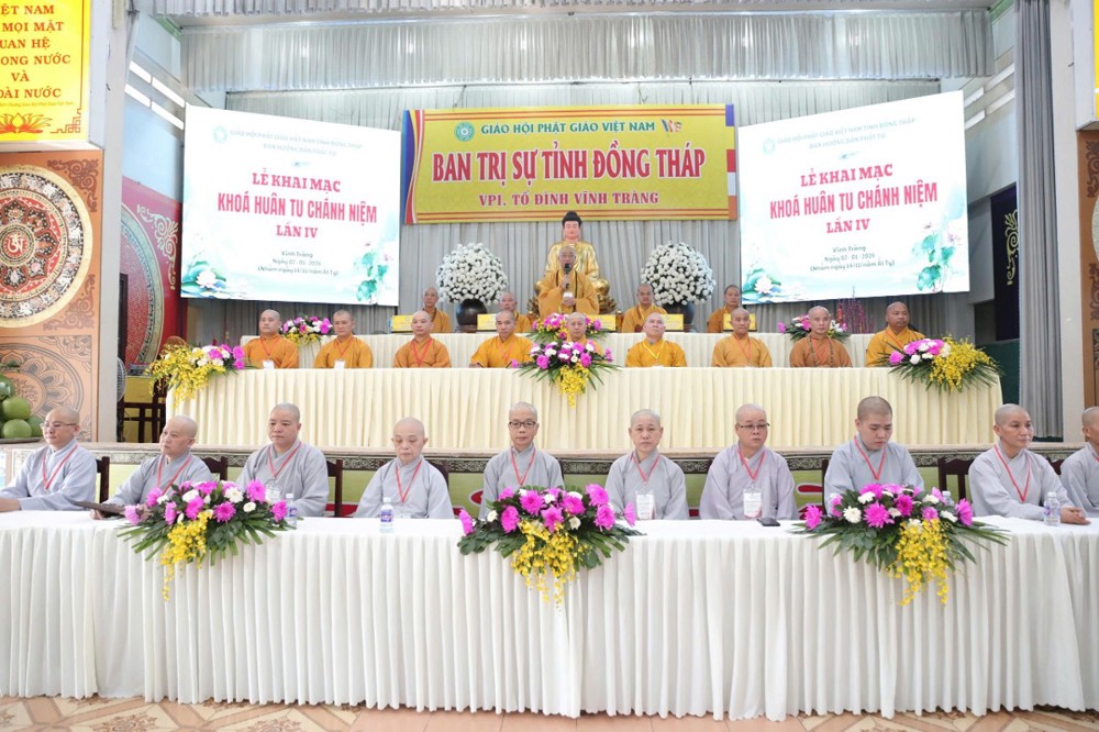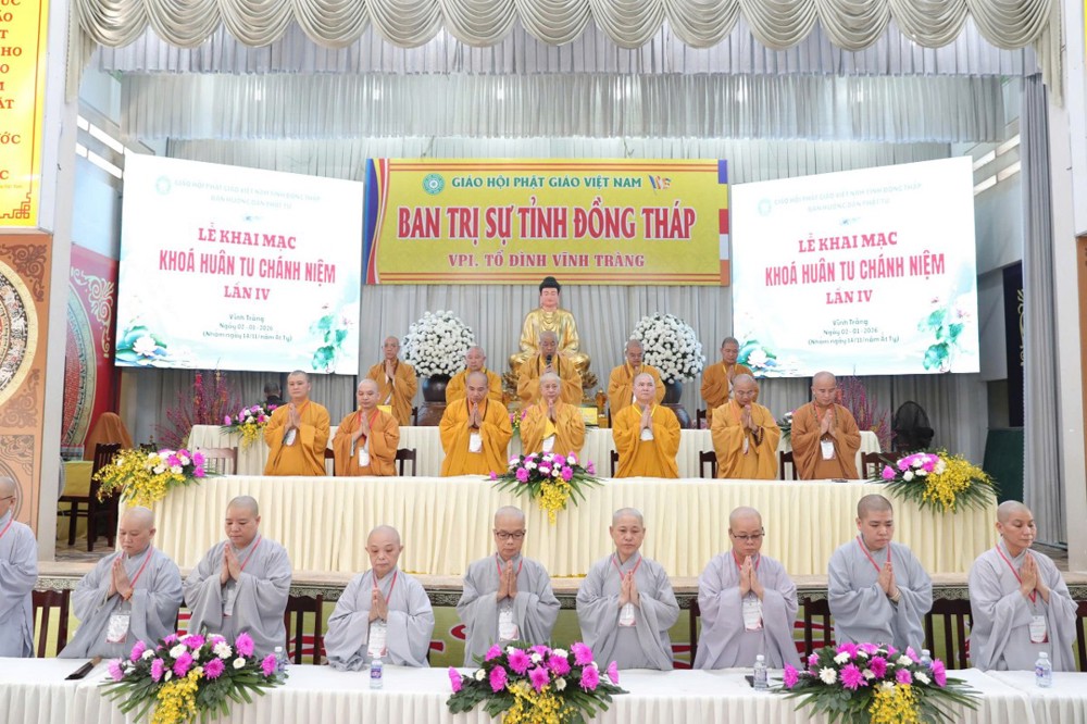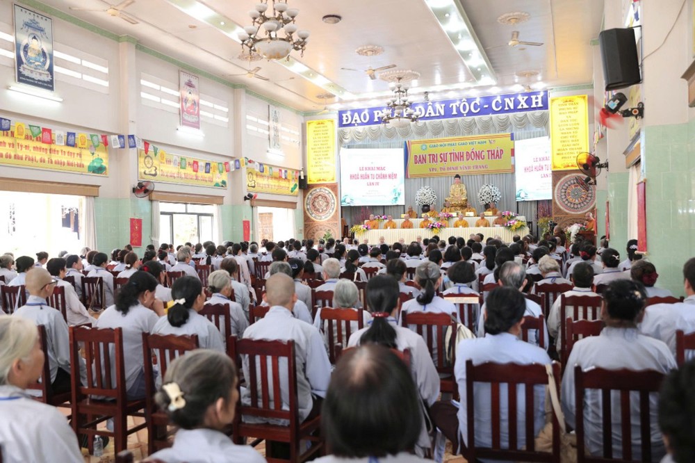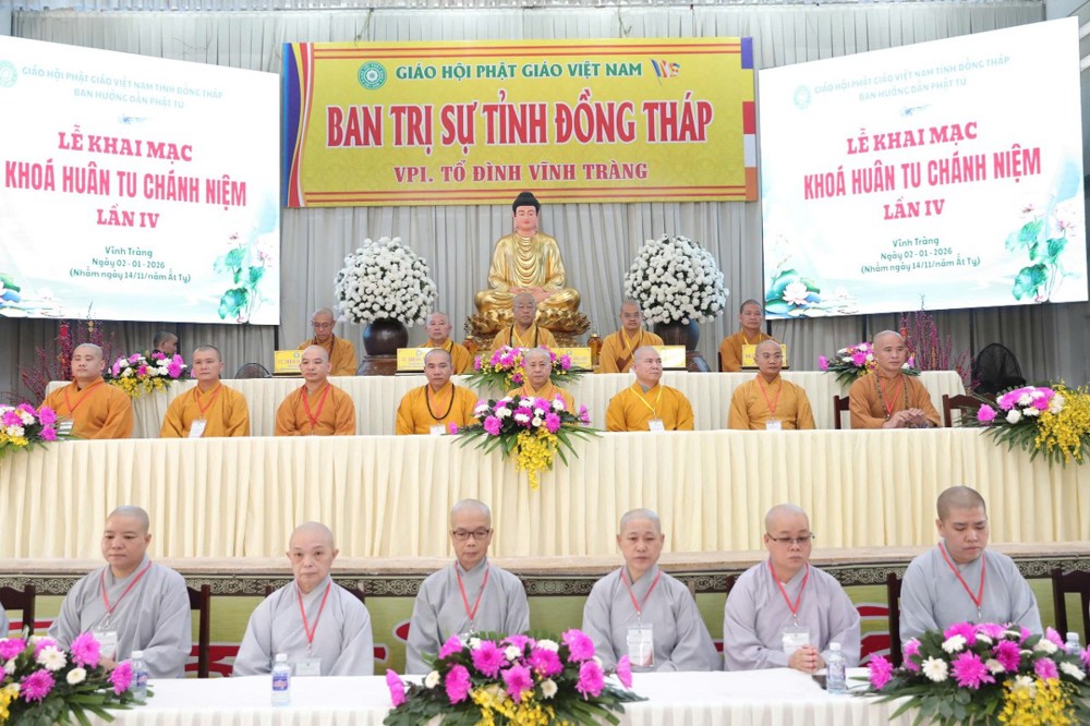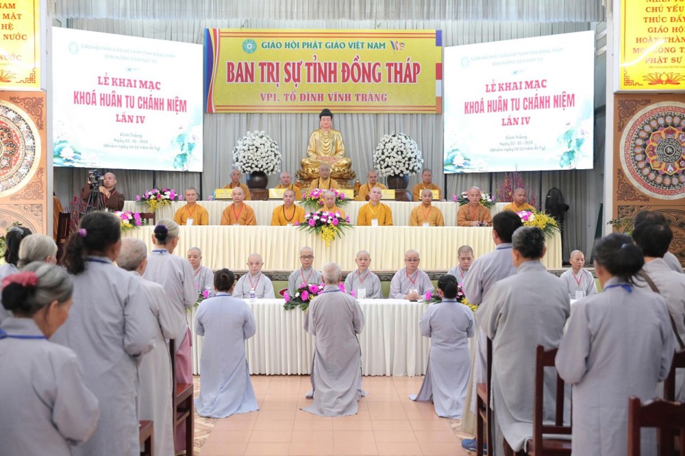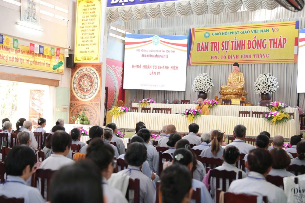 PSO – Sáng ngày 02/01/2026 (nhằm ngày 14/11 năm Ất Tỵ) tại chùa Vĩnh Tràng - Văn phòng Thường trực BTS GHPGVN tỉnh Đồng Tháp (phường Mỹ Phong), Ban Hướng dẫn Phật tử tỉnh tổ chức khóa “Huân tu Chánh niệm” lần thứ IV - mừng Khánh Vía Đức Phật A Di Đà; Khóa tu quy tụ hơn 300 Phật tử tham dự.