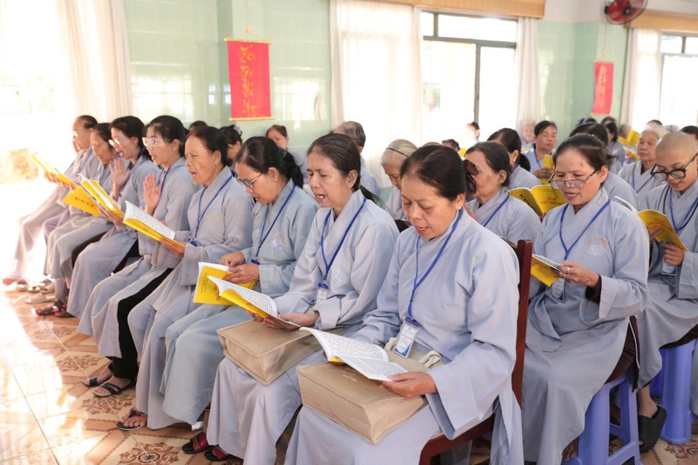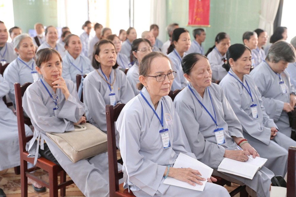 Bên cạnh đó, ĐĐ.Thích Huệ Phát – Chánh Thư ký BTS GHPGVN tỉnh đã hướng dẫn sinh hoạt tu học về phương pháp quán sát hơi thở, giúp hành giả bước đầu thực tập chánh niệm thân – tâm, an trú trong hiện tại, tạo nền tảng cho các thời khóa tu tập tiếp theo.
