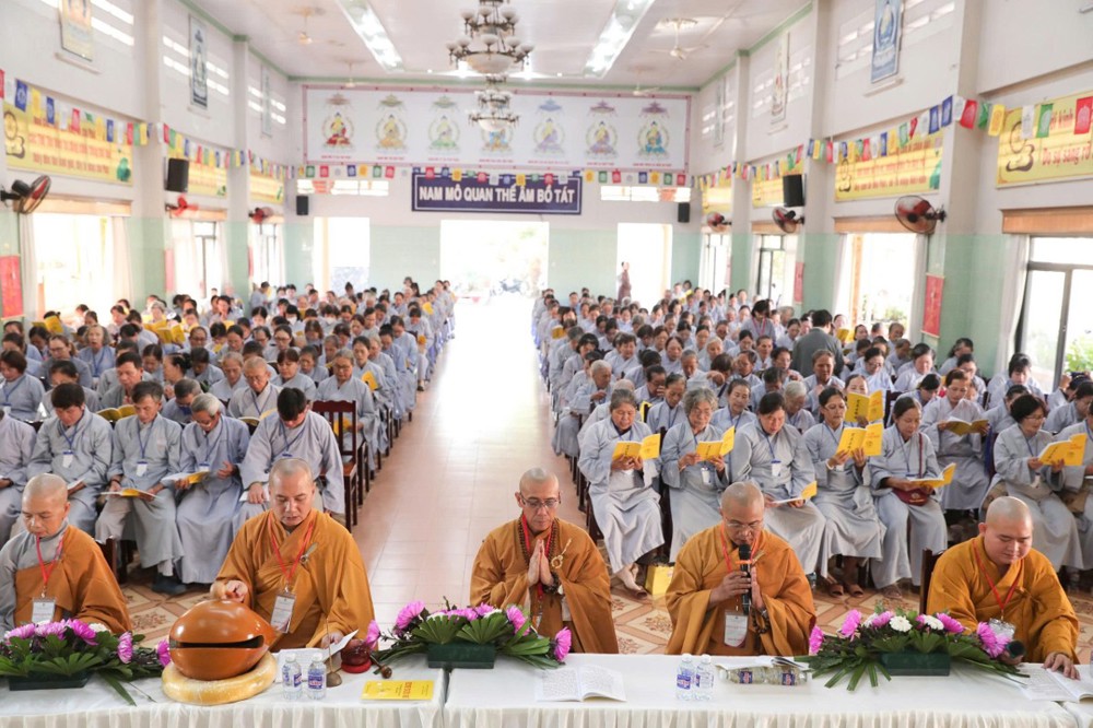 TT.Thích Quảng Lộc – Phó trưởng Ban Thường trực BTS GHPGVN tỉnh đã ban lời huấn từ, sách tấn hành giả lấy Giới – Định – Tuệ làm nền tảng tu học; lấy Chánh niệm làm phương tiện để chuyển hóa khổ đau, xây dựng đời sống an vui, hạnh phúc. Nếu được như vậy thì đó làm những đoá hoa sen tinh khiết mà quý Phật tử và đạo tràng khóa tu dâng lên cúng dường nhân ngày Khánh vía đức Phật A Di Đà.
