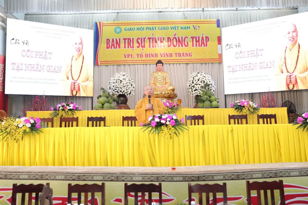 Trong khuôn khổ chương trình, hành giả đã được lắng nghe thời pháp thoại của TT.Thích Nhuận Đức – Phó trưởng Ban Trị sự GHPGVN tỉnh Đồng Tháp, với chủ đề xoay quanh Đức Phật A Di Đà và cõi Tịnh độ, giúp đại chúng hiểu rõ hơn ý nghĩa niềm tin, nguyện lực và sự hành trì trong pháp môn Tịnh độ, từ đó củng cố đời sống tâm linh thêm vững chãi.