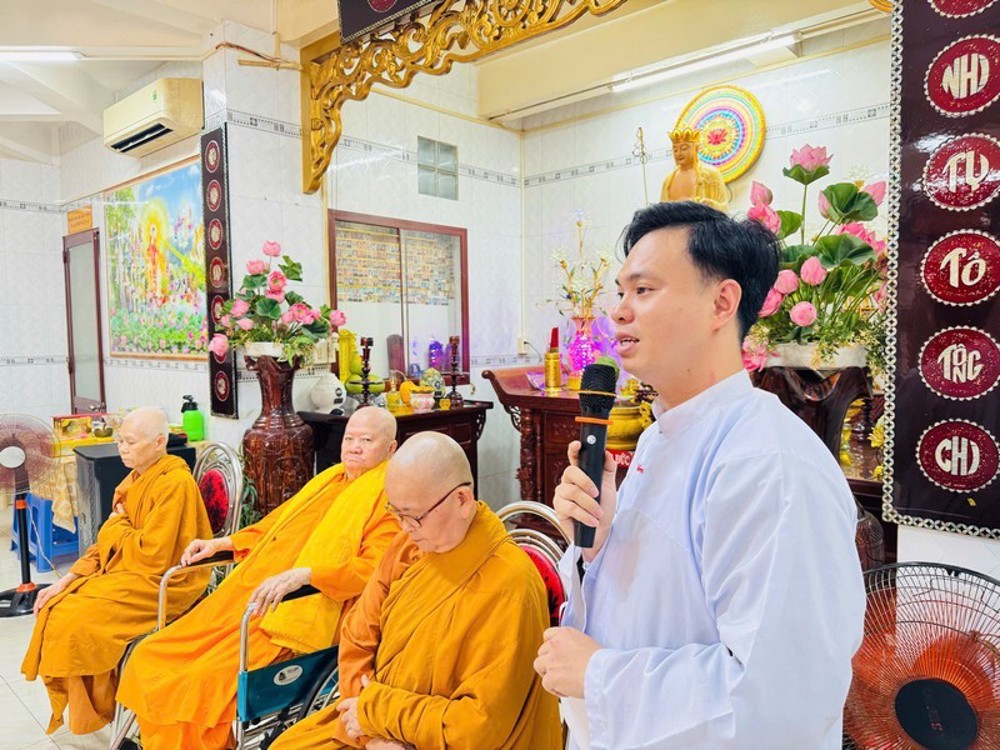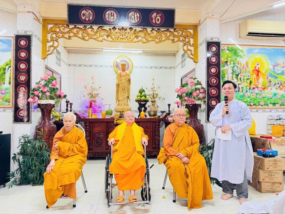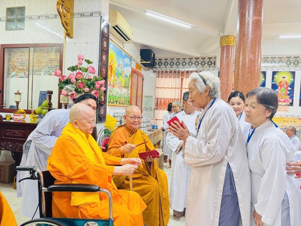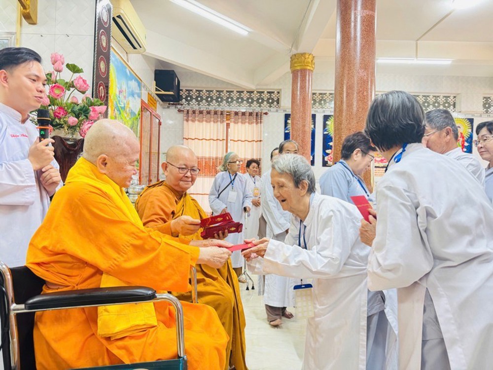 Phật tử Ngọc Cúc đã đại diện đạo tràng dâng lời khánh tuế: “chúng con chí thành đảnh lễ và khánh tuế chư Tôn Đức Ni. Nguyện cầu hồng ân Tam Bảo gia hộ chư Tôn Đức pháp thể khinh an, giới đức trang nghiêm, tuệ giác rạng ngời, mãi là ngọn đèn chánh pháp soi đường cho hàng Phật tử chúng con giữa cuộc đời nhiều biến động. Sự hiện diện và giáo dưỡng của chư Tôn Đức chính là ruộng phước thù thắng để chúng con nương tựa tu học, chuyển hóa thân tâm và trưởng dưỡng Bồ-đề tâm.” Và chúc thọ quý Phật tử cao niên: “…đạo tràng xin thành kính chúc thọ quý Phật tử cao niên. Nguyện quý vị phước thọ tăng long, thân tâm an hòa, là bóng cây cổ thụ che mát cho con cháu, là nền tảng đạo đức và tâm linh cho gia đình và đạo tràng. Sự hiện diện của quý vị chính là gia tài vô giá, là phước duyên lớn lao cho hàng hậu học chúng con…”