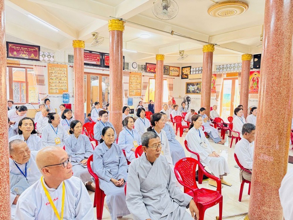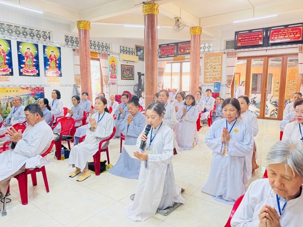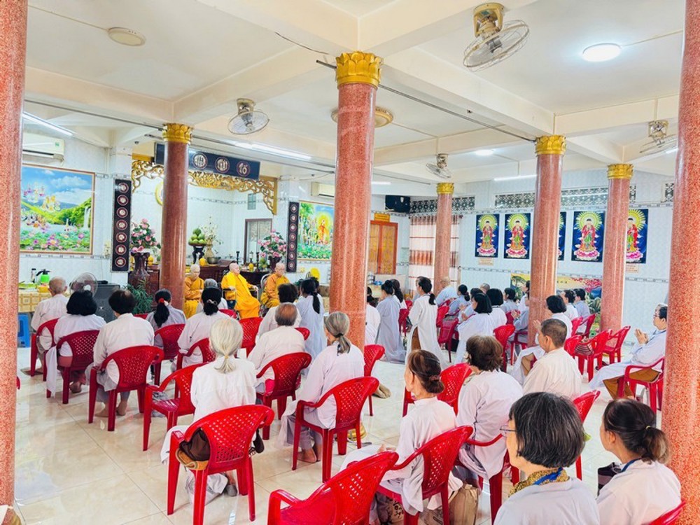 Ngay từ sáng sớm, hơn 60 Phật tử đã vân tập về tịnh xá, đảnh lễ Tam Bảo, phát nguyện thọ trì Bát Quan Trai giới, cùng nhau thực hành một ngày tu học an lạc qua các thời khóa tụng kinh, niệm Phật, thiền hành và thực tập chánh niệm.