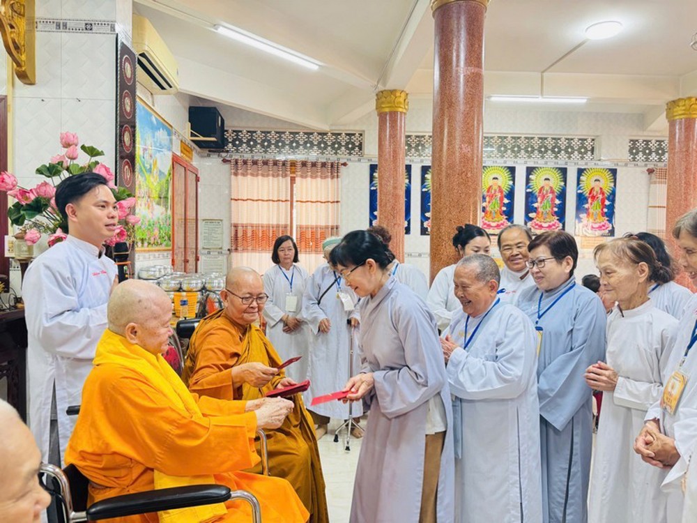 Ni trưởng Sáng Liên – Giáo phẩm Ni giới Hệ phái Khất sĩ, Viện chủ Tịnh xá Ngọc Mỹ, đã hoan hỷ phát lộc đầu năm đến quý Phật tử cao niên, gửi lời chúc thọ quý vị được sống vui, sống khỏe, thân tâm an lạc và luôn tinh tấn tu tập.