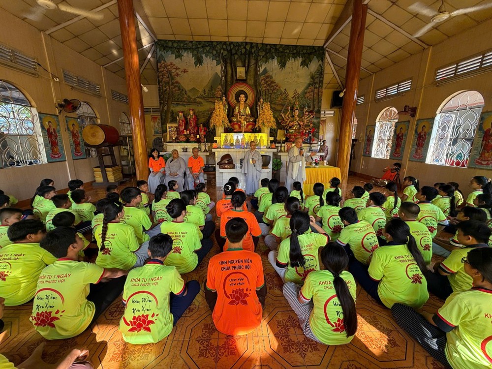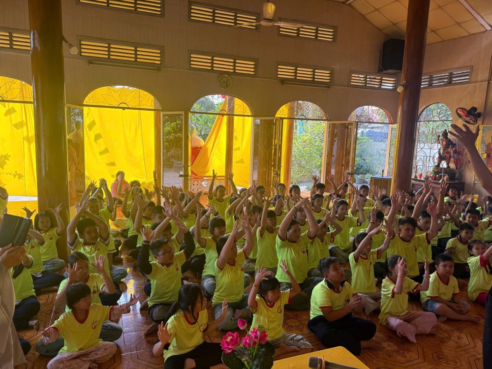 Trong suốt một ngày tu học, dưới sự hướng dẫn của Ni sư Thích Nữ Như Hạnh, Ni sư Thích Nữ Trung Thảo và Ni sư Thích Nữ Liên Hiền, các em được tham gia nhiều hoạt động ý nghĩa như tụng kinh, ngồi thiền, nghe pháp thoại và sinh hoạt nhóm. Qua đó, các em không chỉ học cách nuôi dưỡng tâm an lạc mà còn biết yêu thương, sẻ chia và sống có trách nhiệm hơn với bản thân và gia đình.