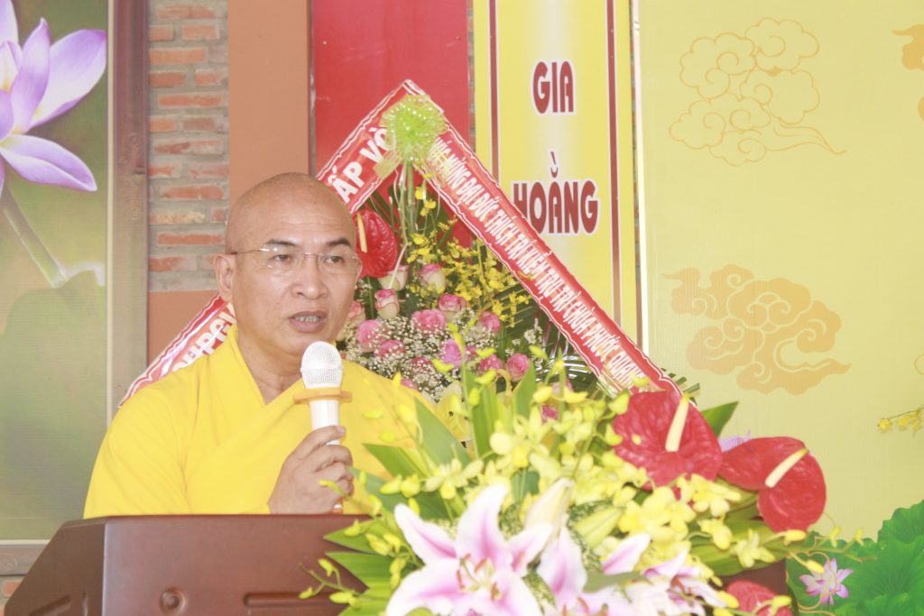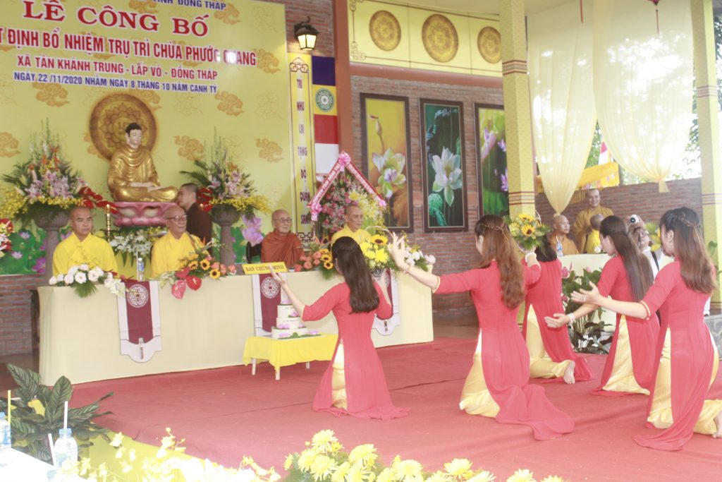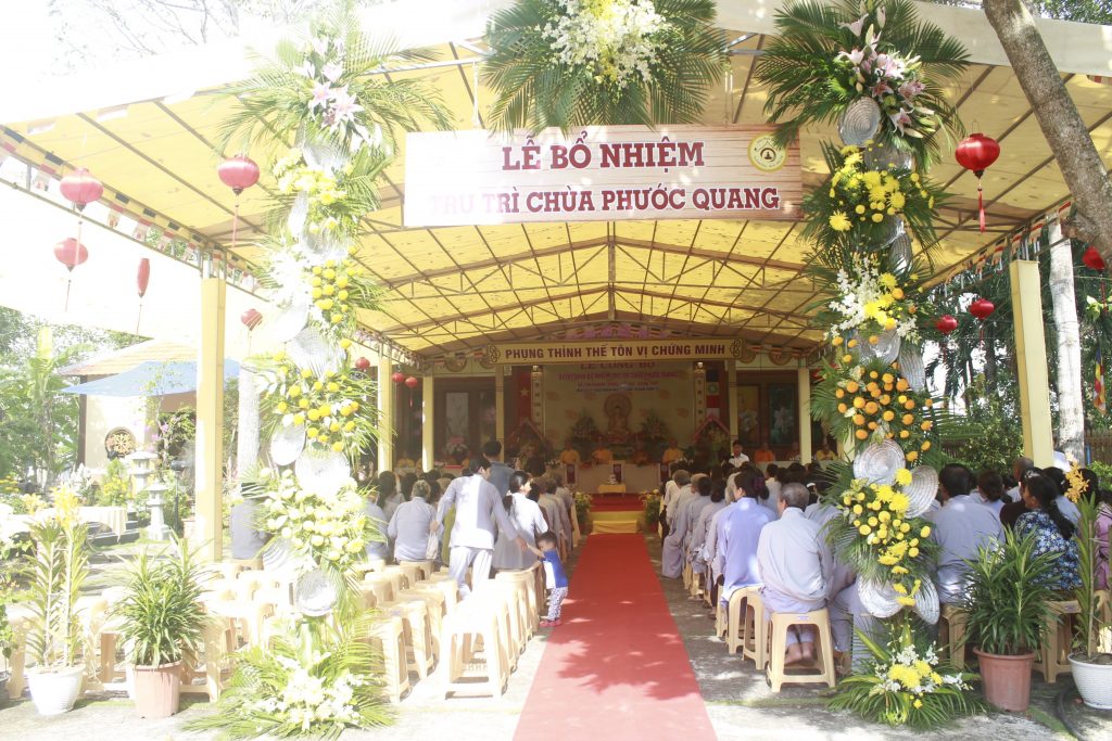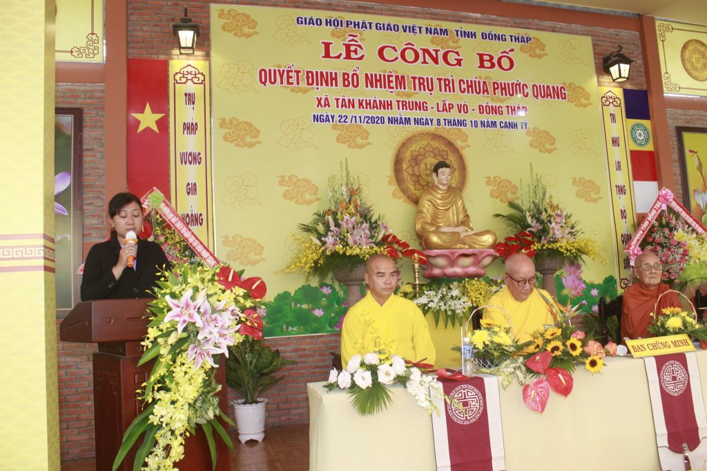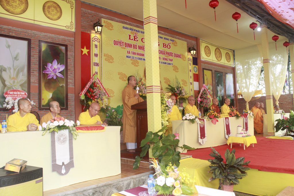 Tại buổi lễ, Tại buổi lễ, TT. Thích Huệ Thủ, Trưởng Ban trị sự GHPGVN huyện Lấp Vò, thay mặt Ban tổ chức tuyên đọc diễn văn khai mạc buổi lễ bổ nhiệm trụ trì chùa Phước Quang, xã Tân Khánh Trung, huyện Lấp Vò, Đồng Tháp.