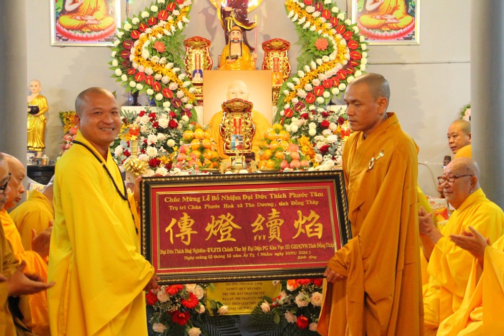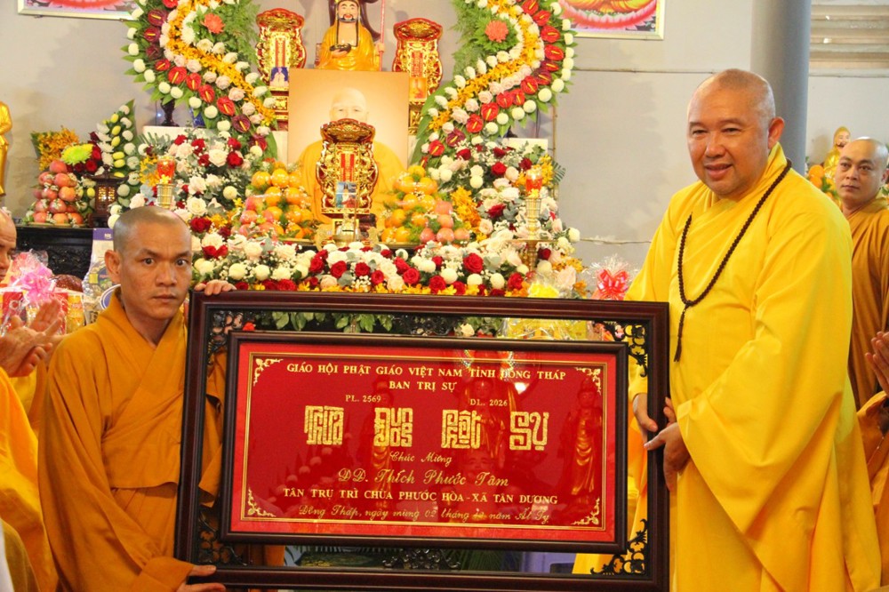 PSO - Trong không khí trang nghiêm và đạo tình, được sự chấp thuận của Ban Trị sự Giáo hội Phật giáo Việt Nam tỉnh Đồng Tháp; sáng ngày 20/1/2026, tại chùa Phước Hòa, (xã Tân Dương, tỉnh Đồng Tháp) đã long trọng diễn ra lễ Đại tường cố Thượng tọa Thích Thiện Phước - tiền nhiệm Trụ trì bổn tự và công bố Quyết định Bổ nhiệm Trụ trì chùa Phước Hòa cho Đại đức Thích Phước Tâm.