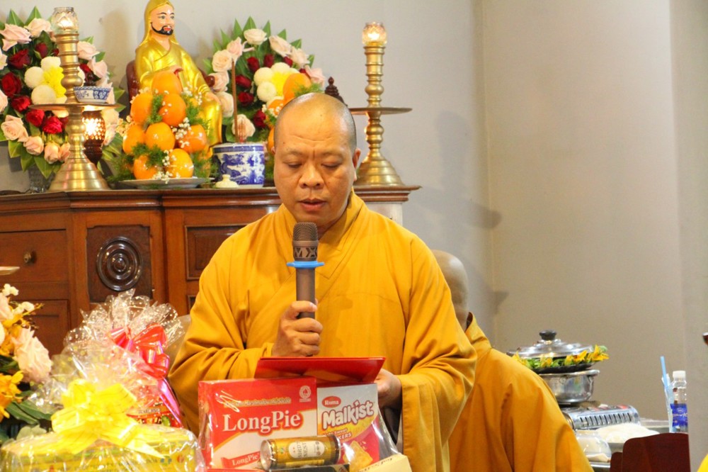 TT.Thích Trí Khả – Phó Thư ký, Phó Văn phòng BTS GHPGVN tỉnh tuyên đọc Quyết định của Ban Trị sự GHPGVN tỉnh Đồng Tháp về việc Bổ nhiệm Đại đức Thích Phước Tâm đảm nhận Trụ trì chùa Phước Hòa, xã Tân Dương, tỉnh Đồng Tháp.