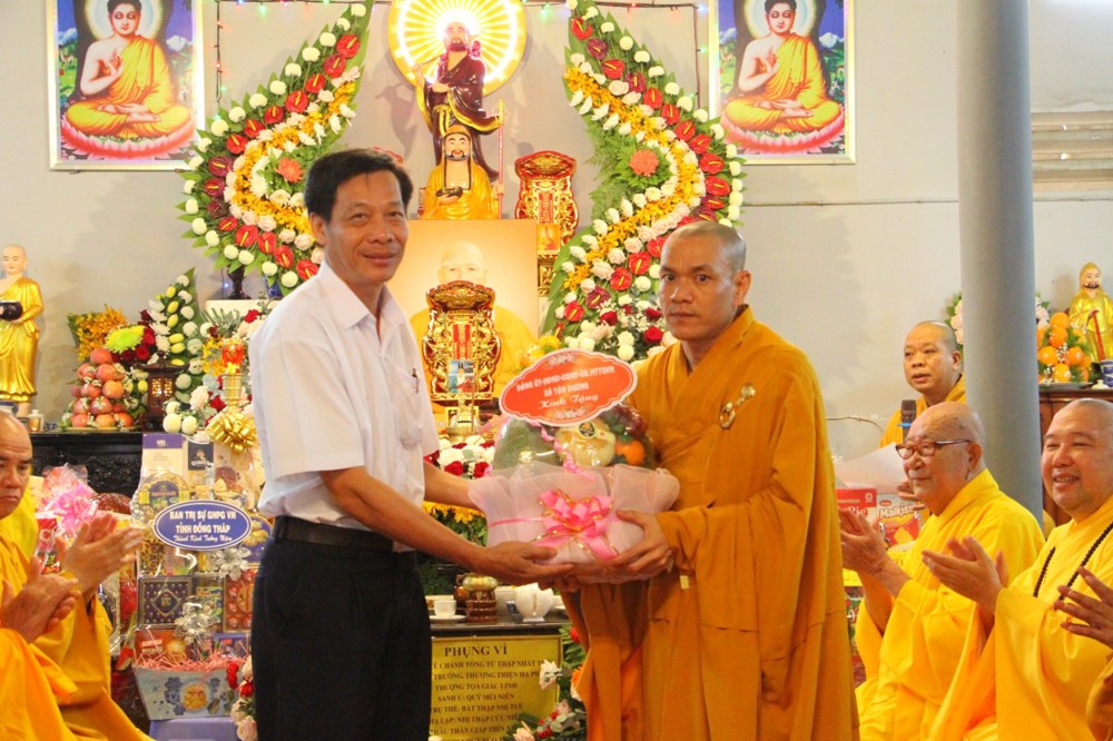 Buổi lễ được sự chứng dự của Trưởng lão Hòa thượng Thích Nhựt Quang – Thành viên HĐCM, Chứng minh BTS GHPGVN tỉnh Đồng Tháp; TT.Thích Tĩnh Triệt – UV HĐTS, Trưởng ban BTS GHPGVN tỉnh Đồng Tháp; TT.Thích Chơn Trí – Phó trưởng ban Thường trực BTS GHPGVN tỉnh; TT.Thích Lệ Nhật – Trưởng Ban TTTT Phật giáo tỉnh, Trưởng Đại diện Phật giáo khu vực III; chư Tôn đức ban Thường trực, Thư ký, Văn phòng Phật giáo tỉnh Đồng Tháp, quý Tăng Ni trụ trì các tự viện, đại diện lãnh đạo chính quyền xã Tân Dương và đông đảo Phật tử cùng về chứng minh và tham dự.