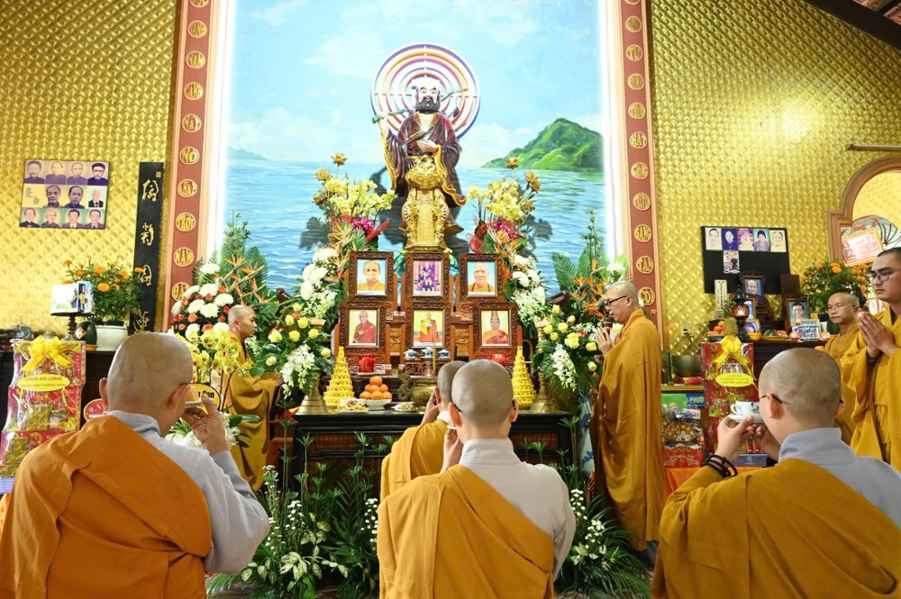 Đại đức Thích Nguyên Phước, Trụ trì chùa An Long cùng chư Tăng đã thực hiện nghi thức cung tiến Giác linh, thành tâm tưởng niệm và cầu nguyện Giác linh chư vị Tổ sư cao đăng Phật quốc, gia hộ cho Tăng Ni và Phật tử tinh tấn tu học. Sau đó, chư Tôn đức trang nghiêm thắp hương tưởng niệm trước Tổ đường trong niềm thành kính và tri ân.