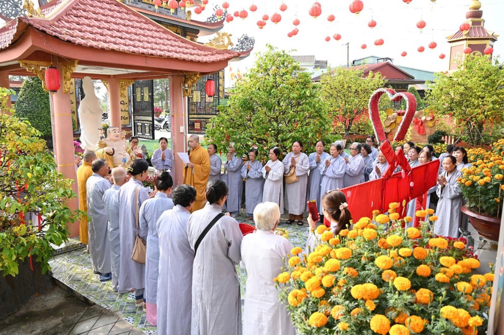Tại buổi lễ, toàn thể đại chúng đã trang nghiêm cử hành nghi thức phóng sanh kỳ nguyện cầu an đầu năm mới và trì tụng Kinh Dược Sư, nguyện cầu quốc thái dân an, mưa thuận gió hòa, Phật pháp xương minh, đạo tràng hưng thịnh.