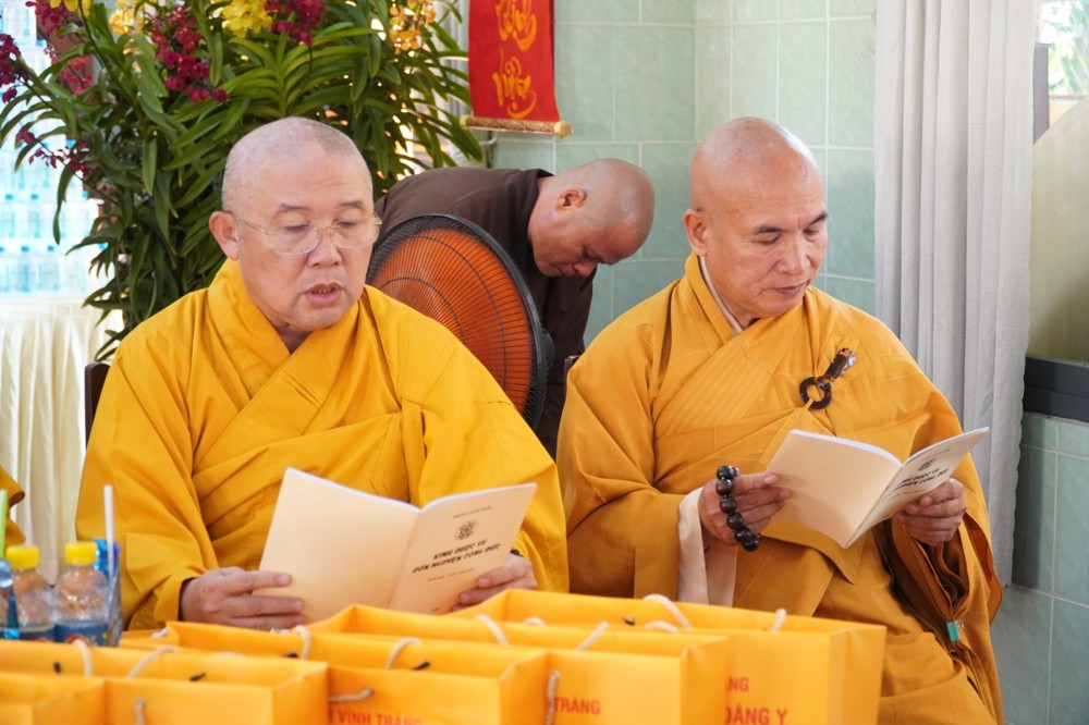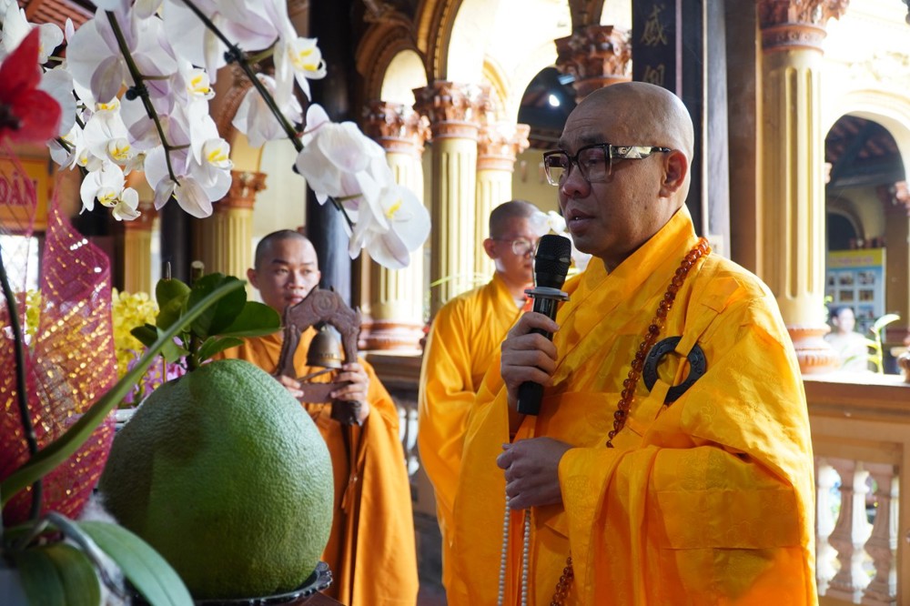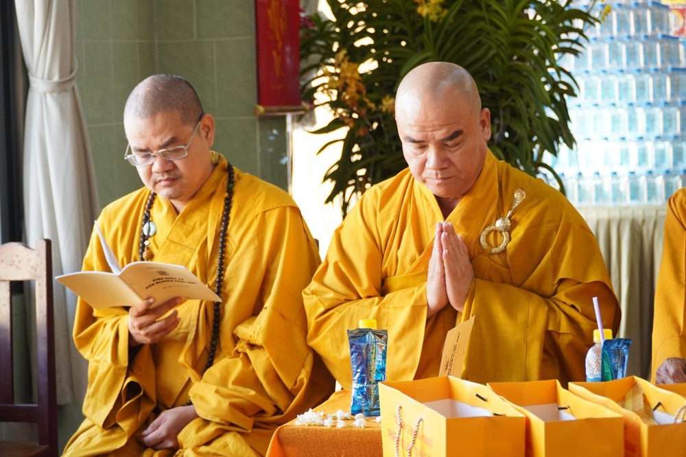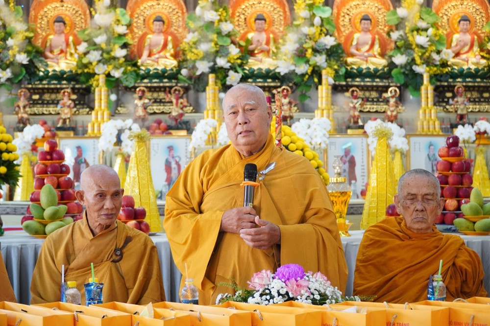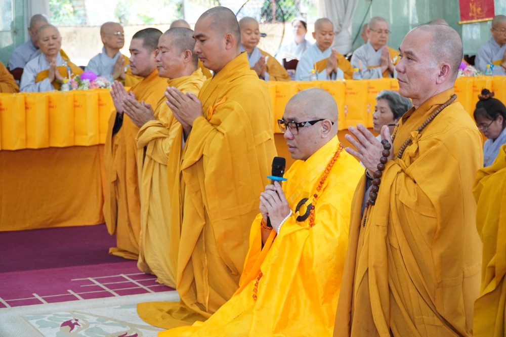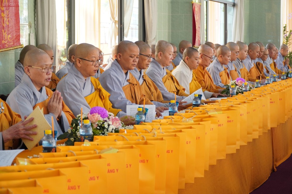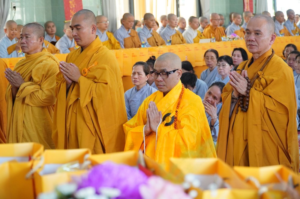 Thượng tọa cũng thay mặt Ban Tổ chức và hàng Phật tử tác bạch cúng dường tịnh tài phẩm vật lên chư Tôn đức, nhằm tạo phước duyên lành cầu kiết tường, bình an đến toàn thể hội chúng và nguyện cho Phật sự năm mới tại tỉnh nhà được thành tựu viên mãn.