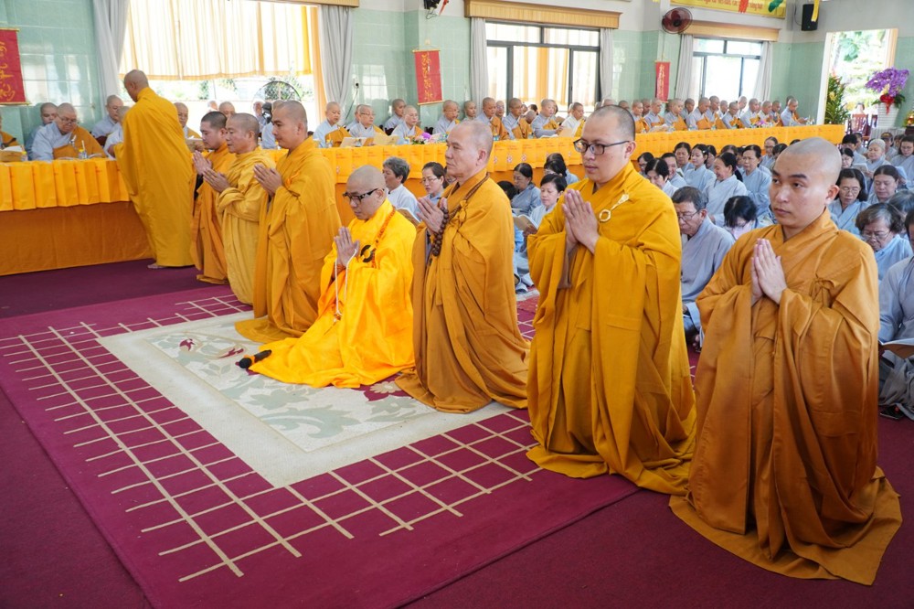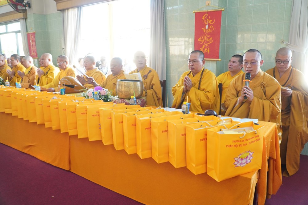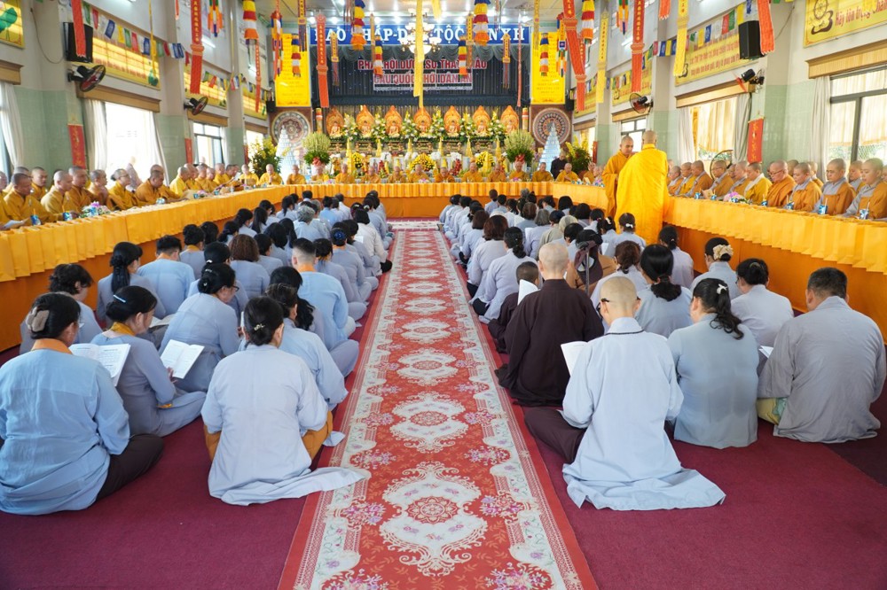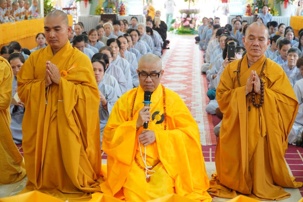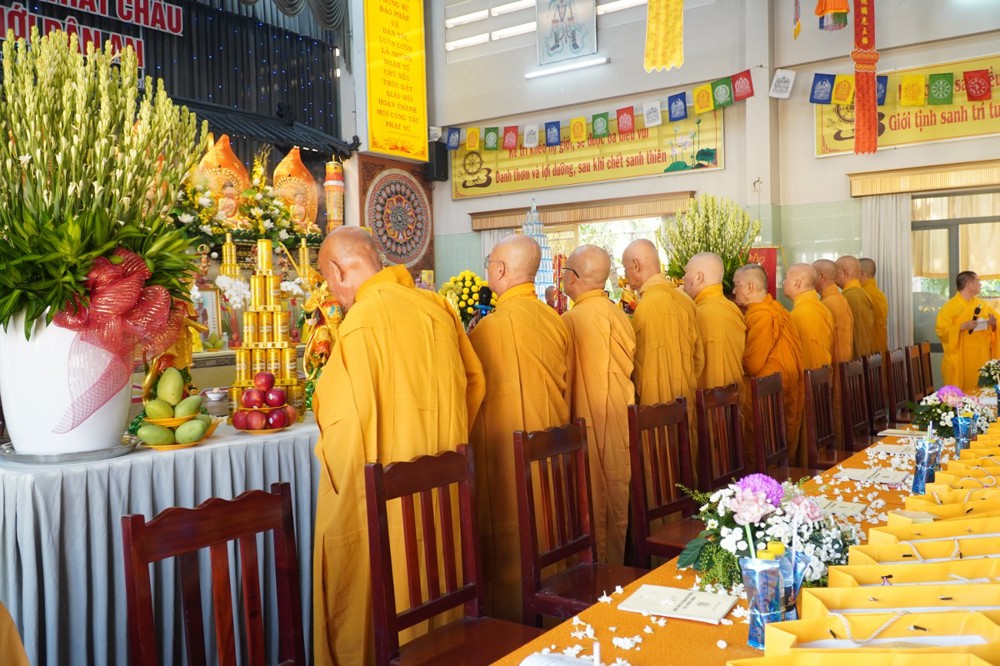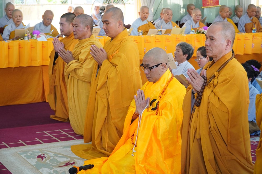 Thượng tọa cũng thay mặt Ban Tổ chức và hàng Phật tử tác bạch cúng dường tịnh tài phẩm vật lên chư Tôn đức, nhằm tạo phước duyên lành cầu kiết tường, bình an đến toàn thể hội chúng và nguyện cho Phật sự năm mới tại tỉnh nhà được thành tựu viên mãn.