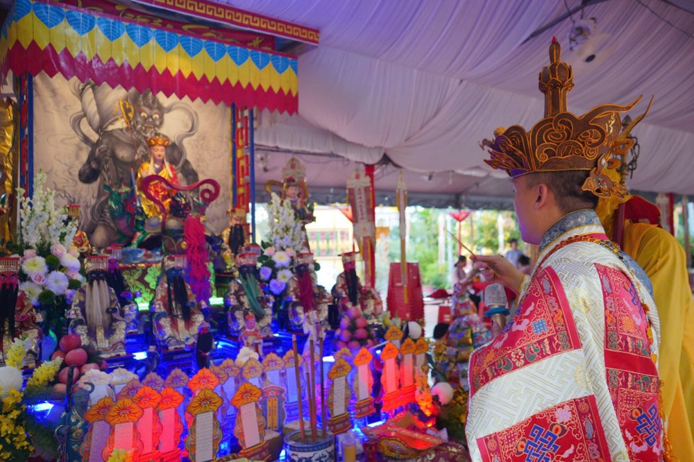 Buổi chiều cùng ngày Ban Tổ chức trang nghiêm cung thỉnh Đại đức Thích Phổ Tuệ - Trụ trì chùa Bửu Thạnh (Mỹ Tho) sám chủ Trai đàn cùng Ban Lễ sư thiết lễ trai đàn Chẩn tế, cầu nguyện quốc thân dân an, thiên hạ thái bình, âm siêu dường thạnh.