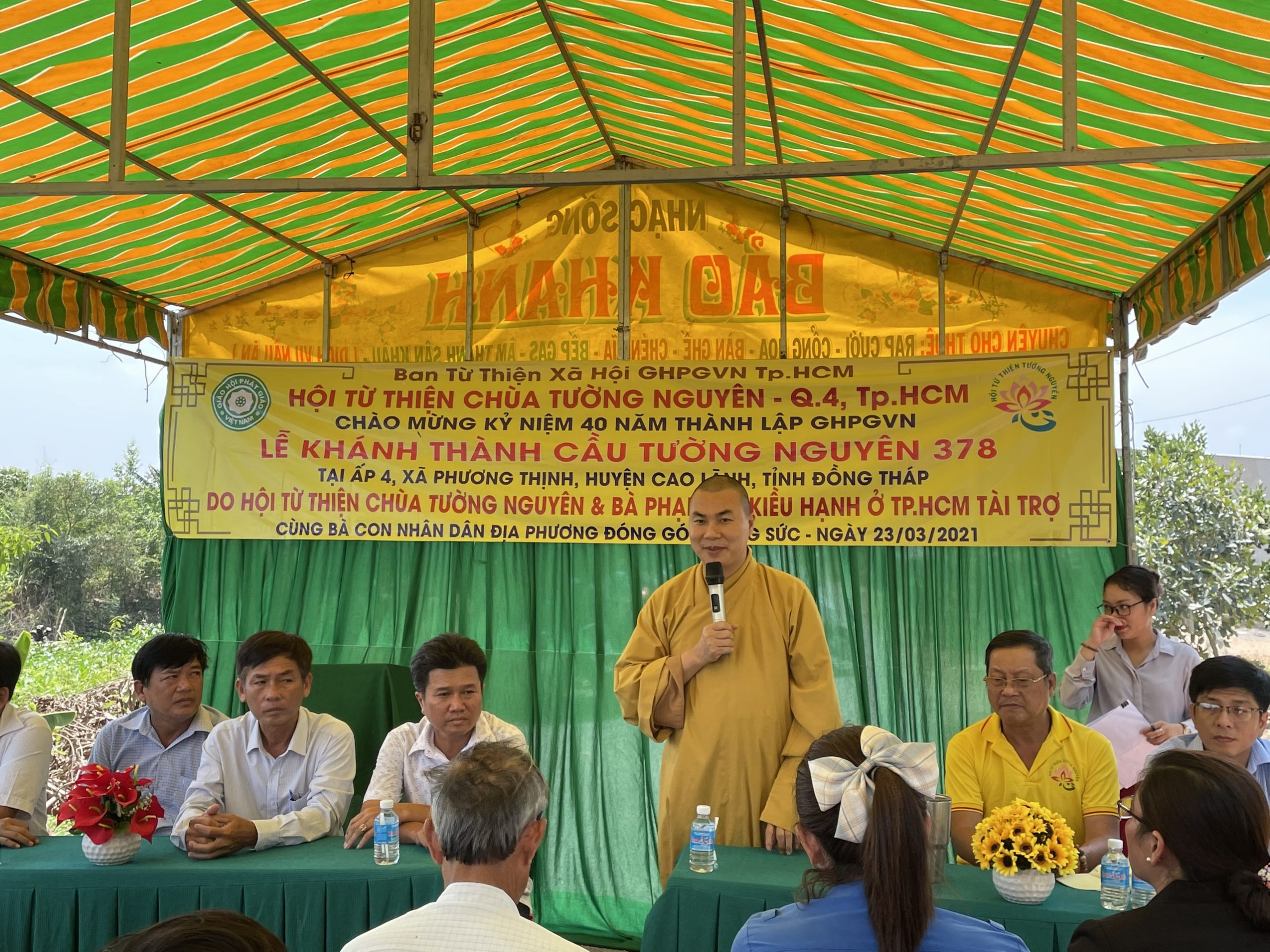 Buổi khánh thành cầu dưới sự tham dự của ĐĐ.Thích Minh Phú - Phó trưởng Ban kiêm Chánh Thư ký Ban TTXH Phật giáo TP.HCM, Hội trưởng Hội Từ thiện chùa Tường Nguyên cùng các thành viên trong Hội Từ thiện Tường Nguyên và các nhà tài trợ và nhân dân địa phương.
