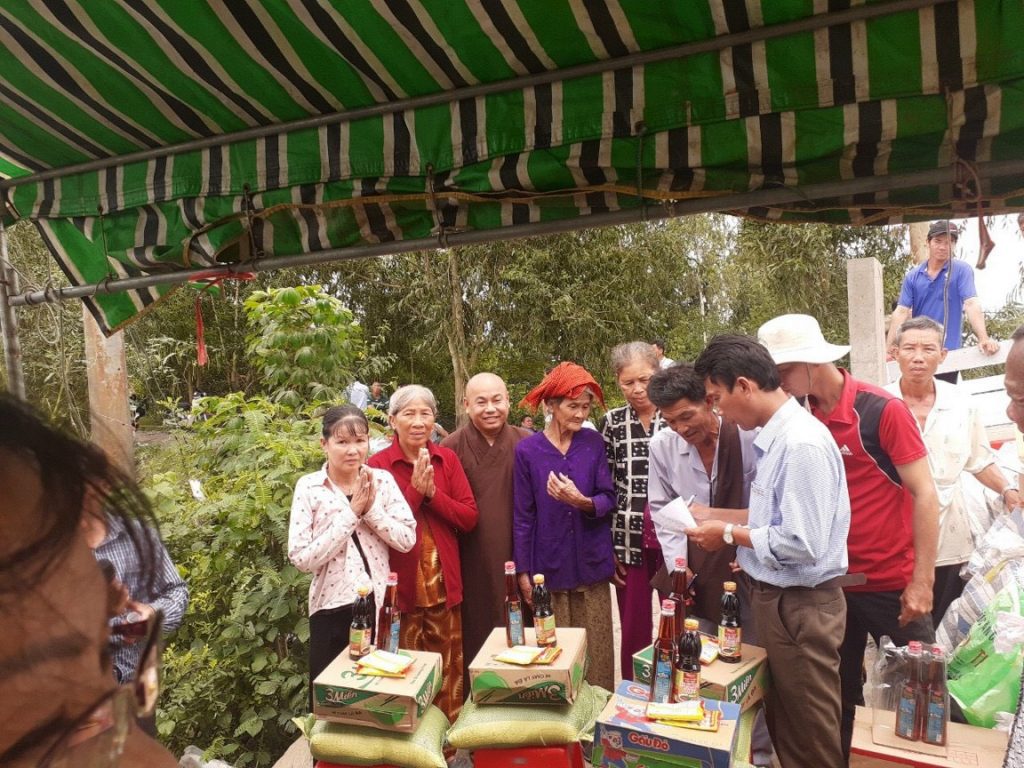 Nhân dịp này, Đại đức Thích Huệ Phát và các mạnh thường quân huyện Cao Lãnh trao tặng 50 phần quà cho các hộ nghèo tại ấp 1, để tạo điều kiện sinh hoạt tốt trong những ngày nước nổi nơi huyện nhà.