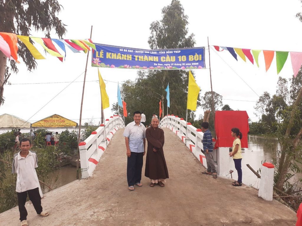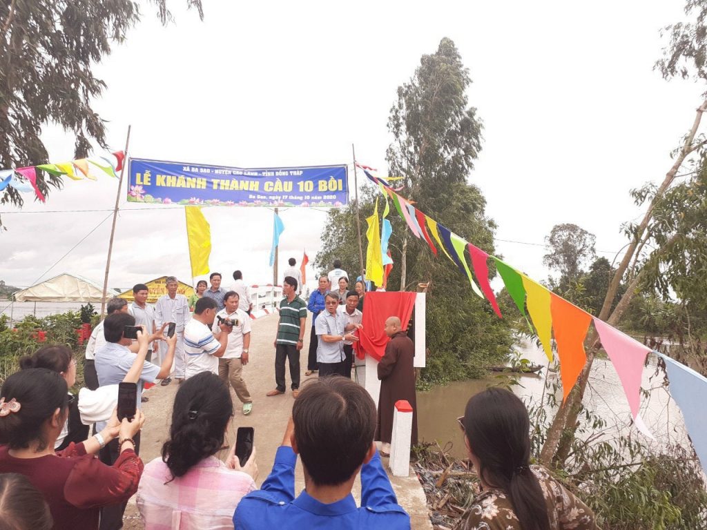 PSO – Vào ngày 17/10/2020, Ban Từ thiện Xã hội Phật giáo tỉnh Đồng Tháp phối hợp với chánh quyền xã Ba Sao, huyện Cao Lãnh, tỉnh Đồng Tháp và mạnh thường quân tổ chức lễ khánh thành cầu Kinh Mười Bồi.