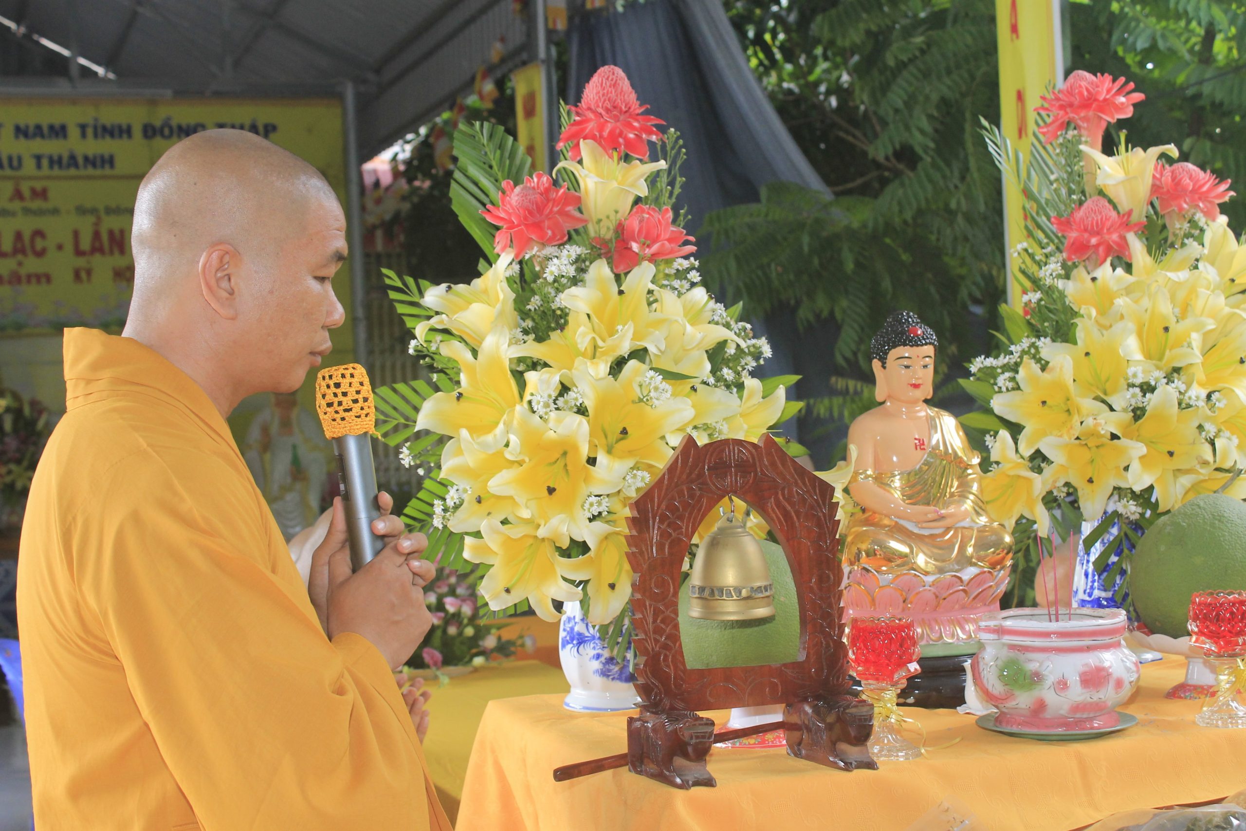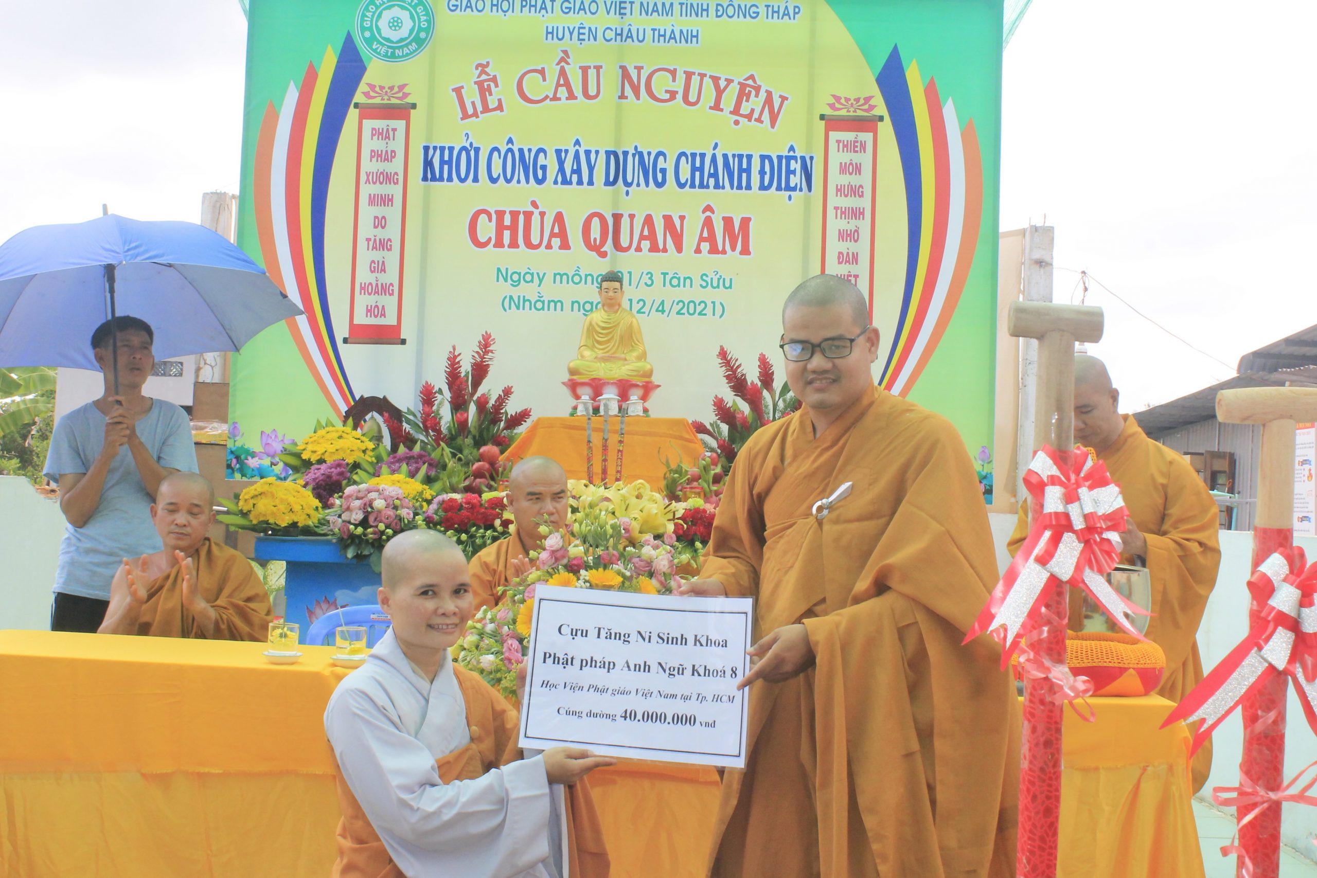 Sư cô Thích nữ Tâm Thường - trụ trì chùa Quan Âm đã được cung đón chư Tôn Giáo phẩm Ban Trị sự GHPGVN tỉnh Đồng Tháp, Ban Trị sự GHPGVN huyện Châu Thành và chư Tôn đức Tăng Ni trụ trì các cơ sở tự viện trong và ngoài tỉnh; huynh đệ lớp Anh văn Phật pháp Học viện Phật giáo tại TP. HCM, chư vị khách quý đại diện chính quyền các cấp, quý Phật tử, các mạnh thường quân đã đến tham dự.