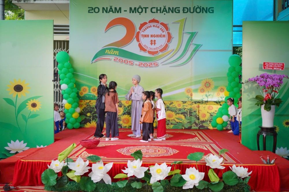 Thượng tọa nhấn mạnh rằng hai mươi năm tuy không dài với một ngôi trường, nhưng là cả một hành trình phụng sự không mệt mỏi, là minh chứng sống động cho tinh thần nhập thế của đạo Phật – nơi từ bi và trí tuệ được thể hiện qua từng bữa ăn, từng bài học và từng nụ cười trẻ thơ.