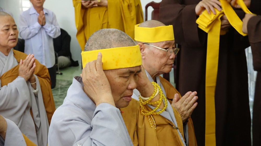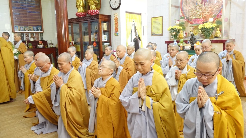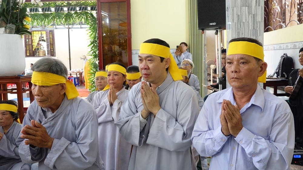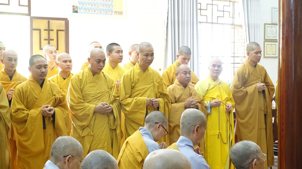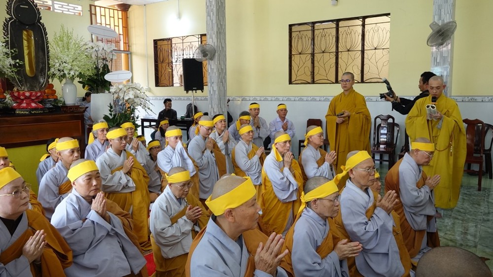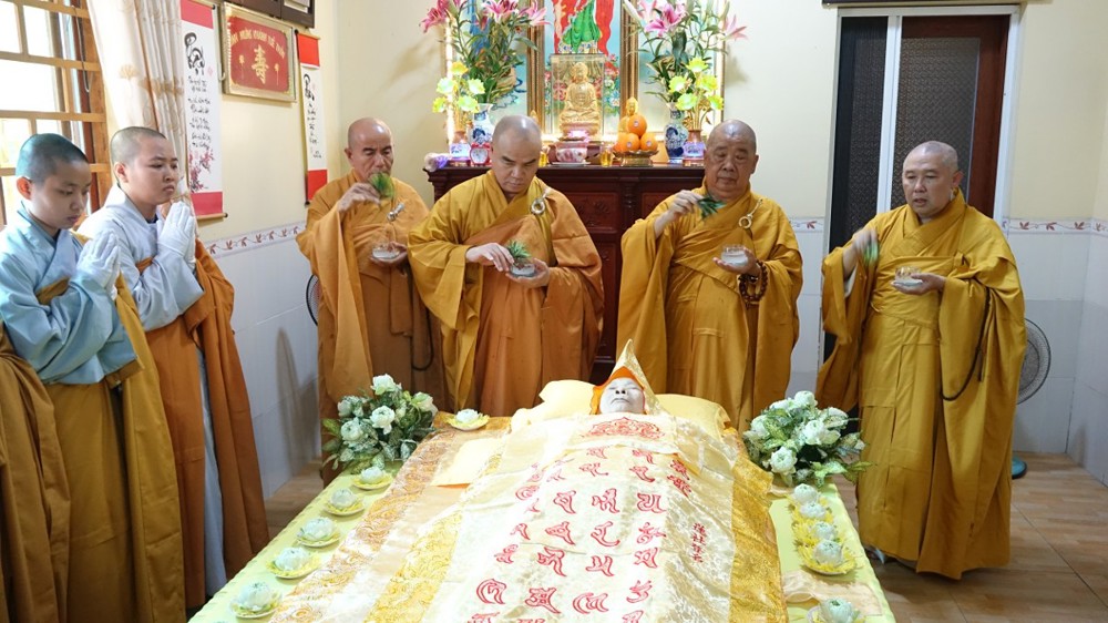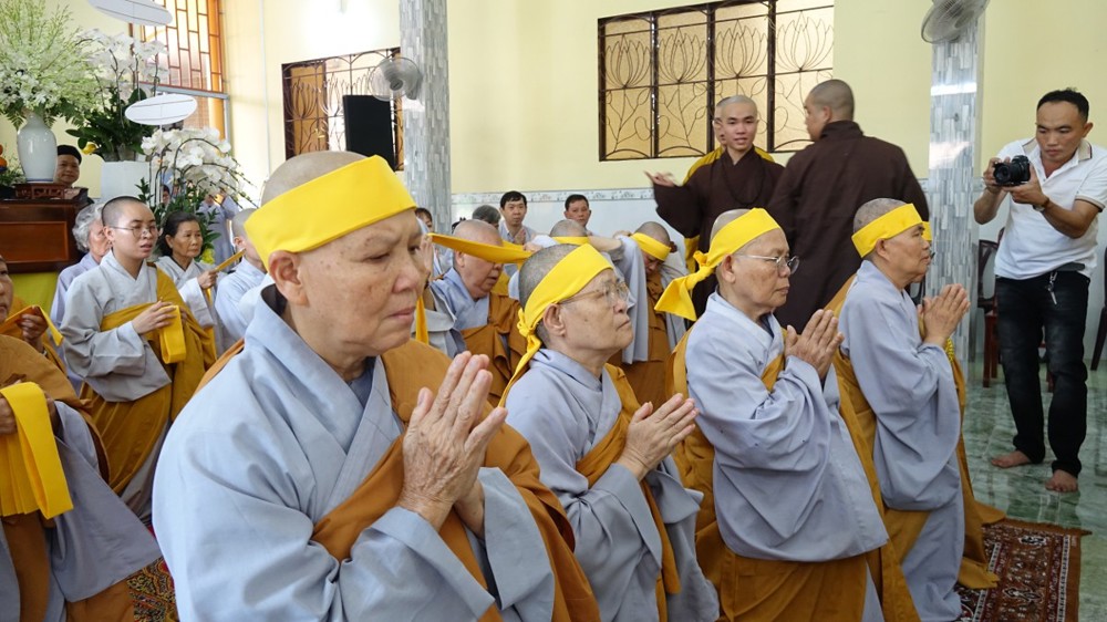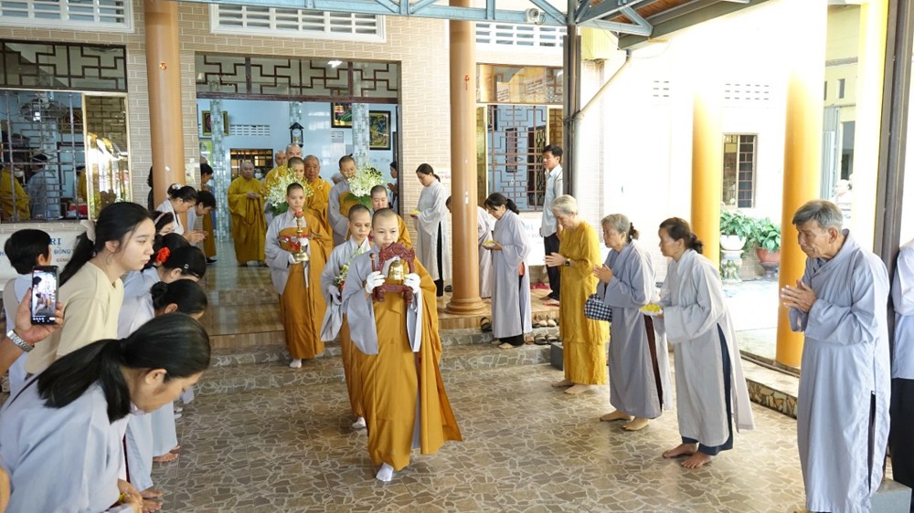 Trong tiếng niệm Phật và âm ba trầm hùng của chuông trống Bát-nhã, môn đồ pháp quyến đã cung thỉnh nhục thân Ni trưởng rời thiền thất hướng về Giác linh đường, để chính thức cử hành lễ nhập quan.