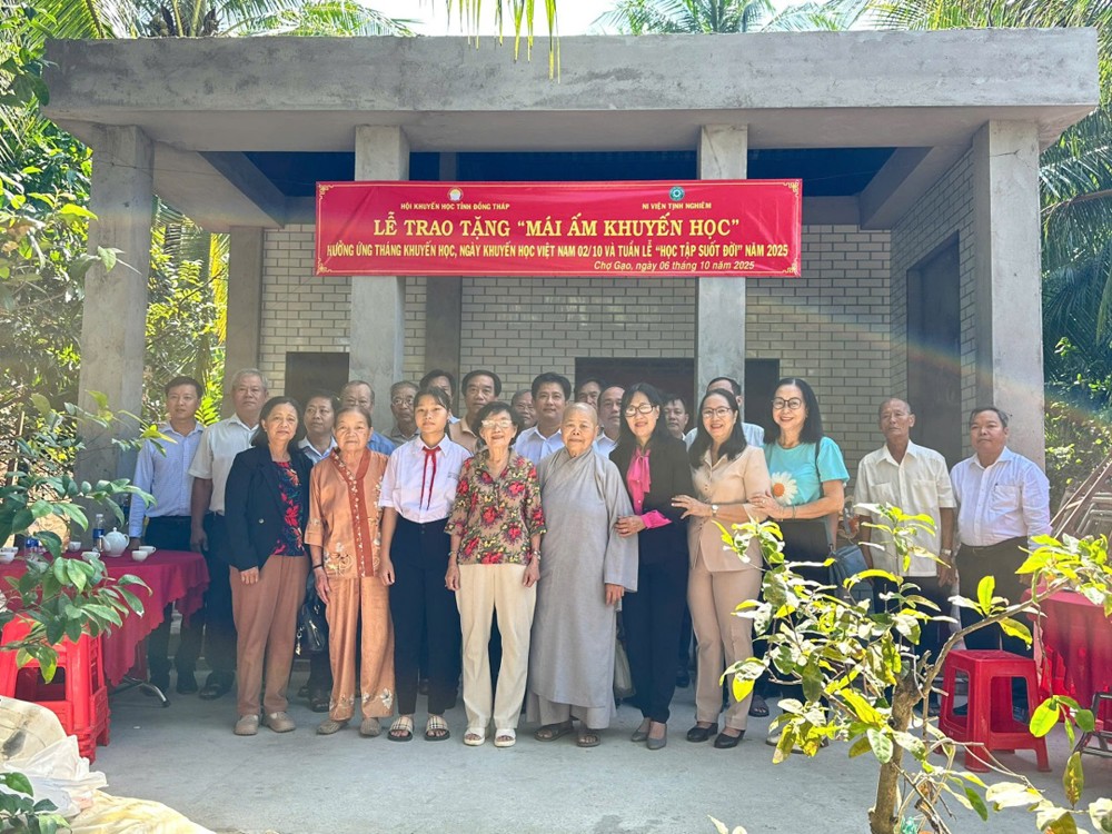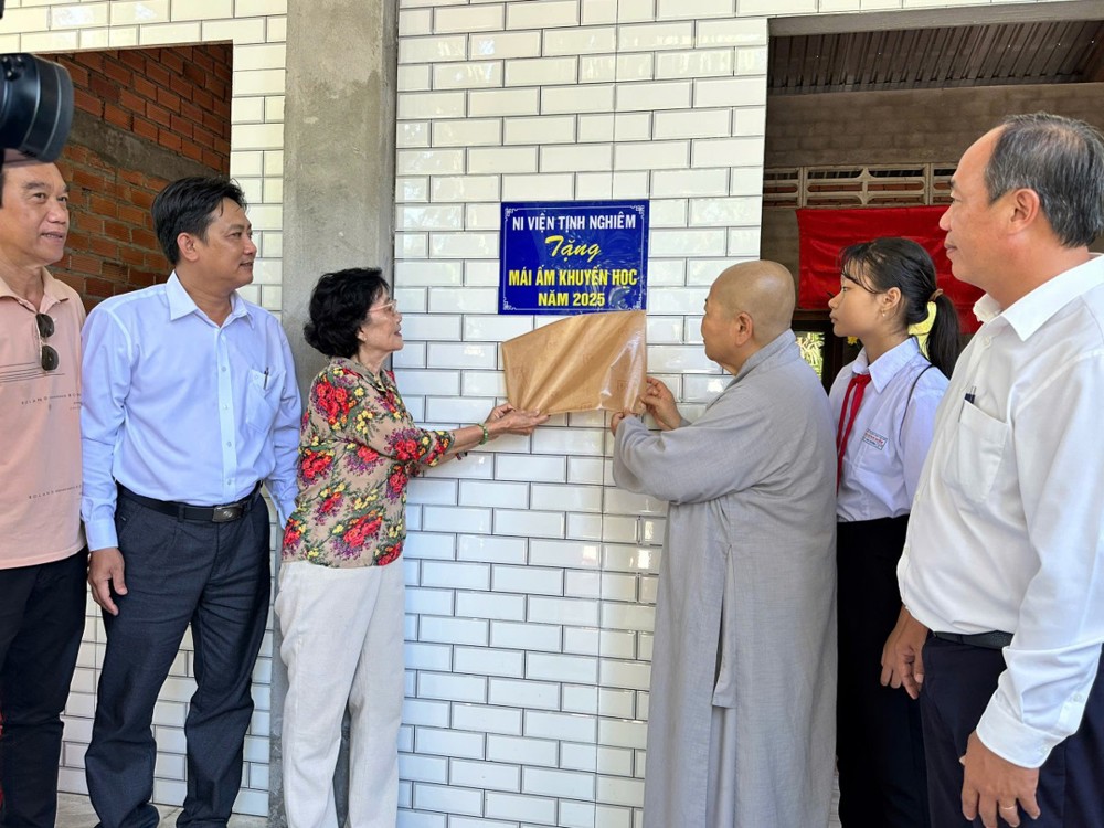 Bắt đầu từ buổi sáng, chùa Tịnh Nghiêm kết hợp với Hội khuyến học tỉnh Đồng Tháp tổ chức lễ bàn giao Mái ấm Khuyến học cho em Dương Thị Kim Cương, học sinh lớp 7 Trường Trung học Cơ sở Long Bình Điền, xã Chợ Gạo.