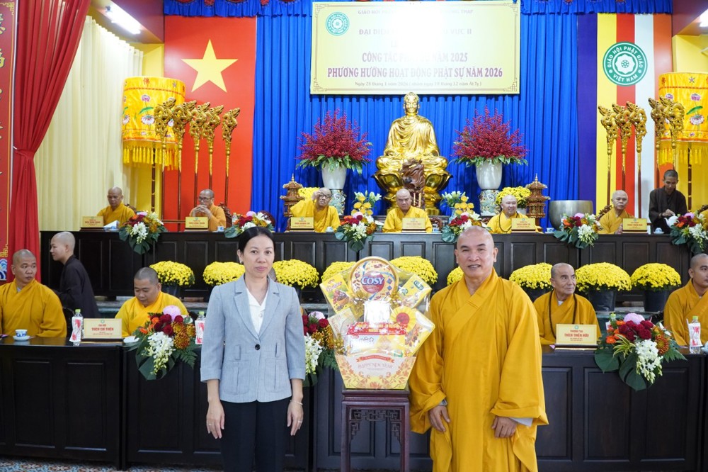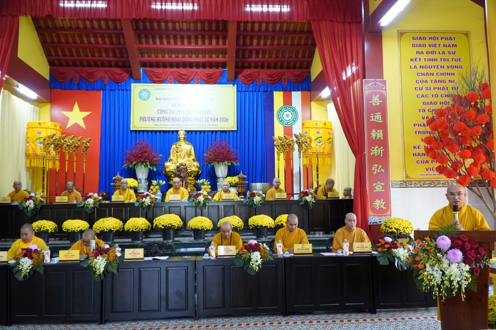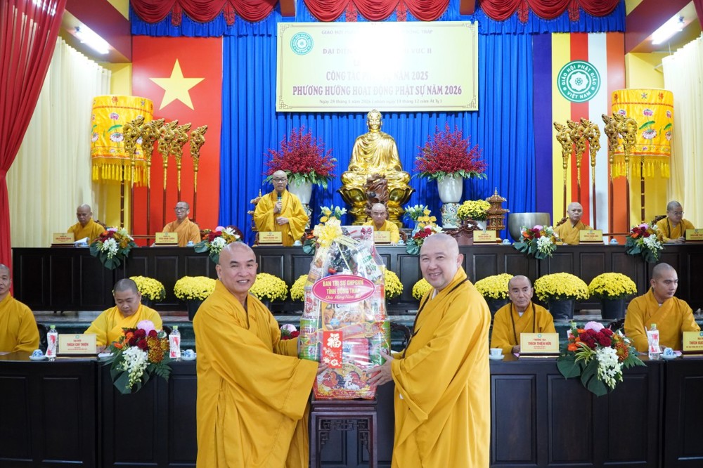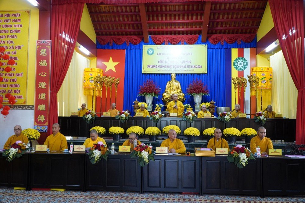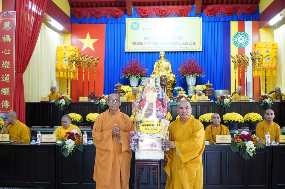 Tại hội nghị ĐĐ.Thích Trí Nguyên – Chánh Thư ký đại diện Phật giáo khu vực II, báo cáo tổng kết Phật sự. Theo đó, Phật giáo Khu vực II được thành lập gồm Tăng Ni các địa bàn huyện Châu Thành và thành phố Sa Đéc (cũ); đặt Văn phòng tại chùa Bửu Quang, do TT.Thích Minh Sơn làm Trưởng Đại diện. Hiện có 87 tự viện, 349 Tăng Ni, với khoảng 6.535 Phật tử sinh hoạt thường xuyên. Phật giáo Khu vực đã triển khai kịp thời các Thông tư, Công văn của Hội đồng Trị sự GHPGVN và hướng dẫn của Ban Trị sự GHPGVN tỉnh đến Tăng Ni trụ trì các tự viện trên địa bàn.